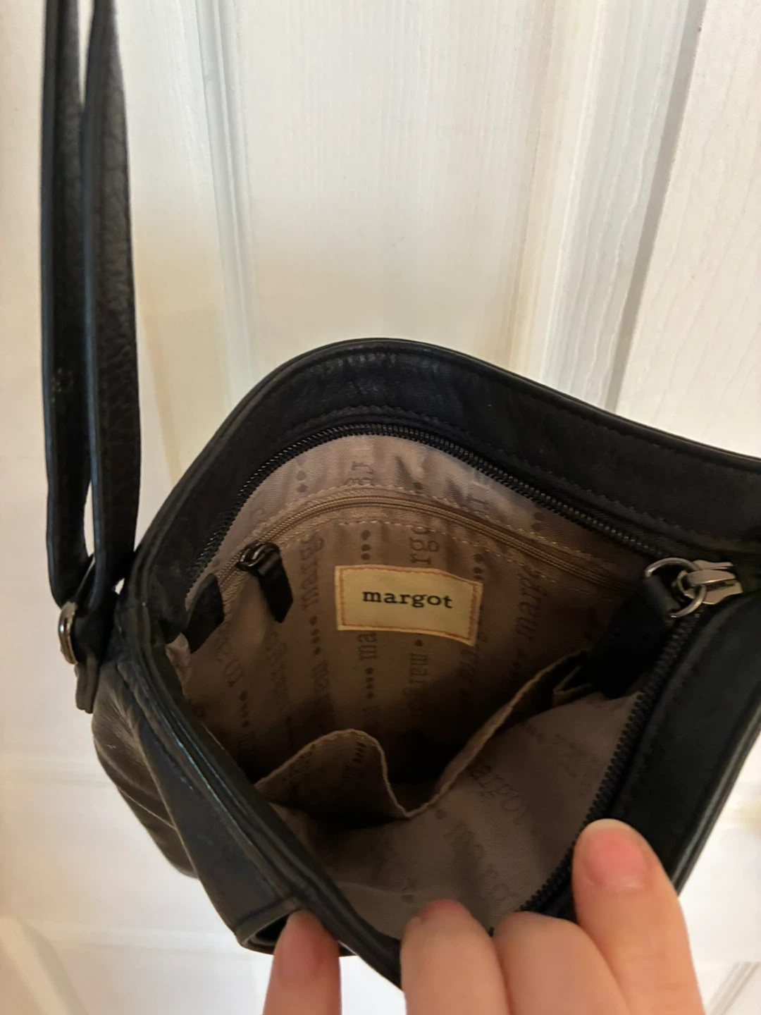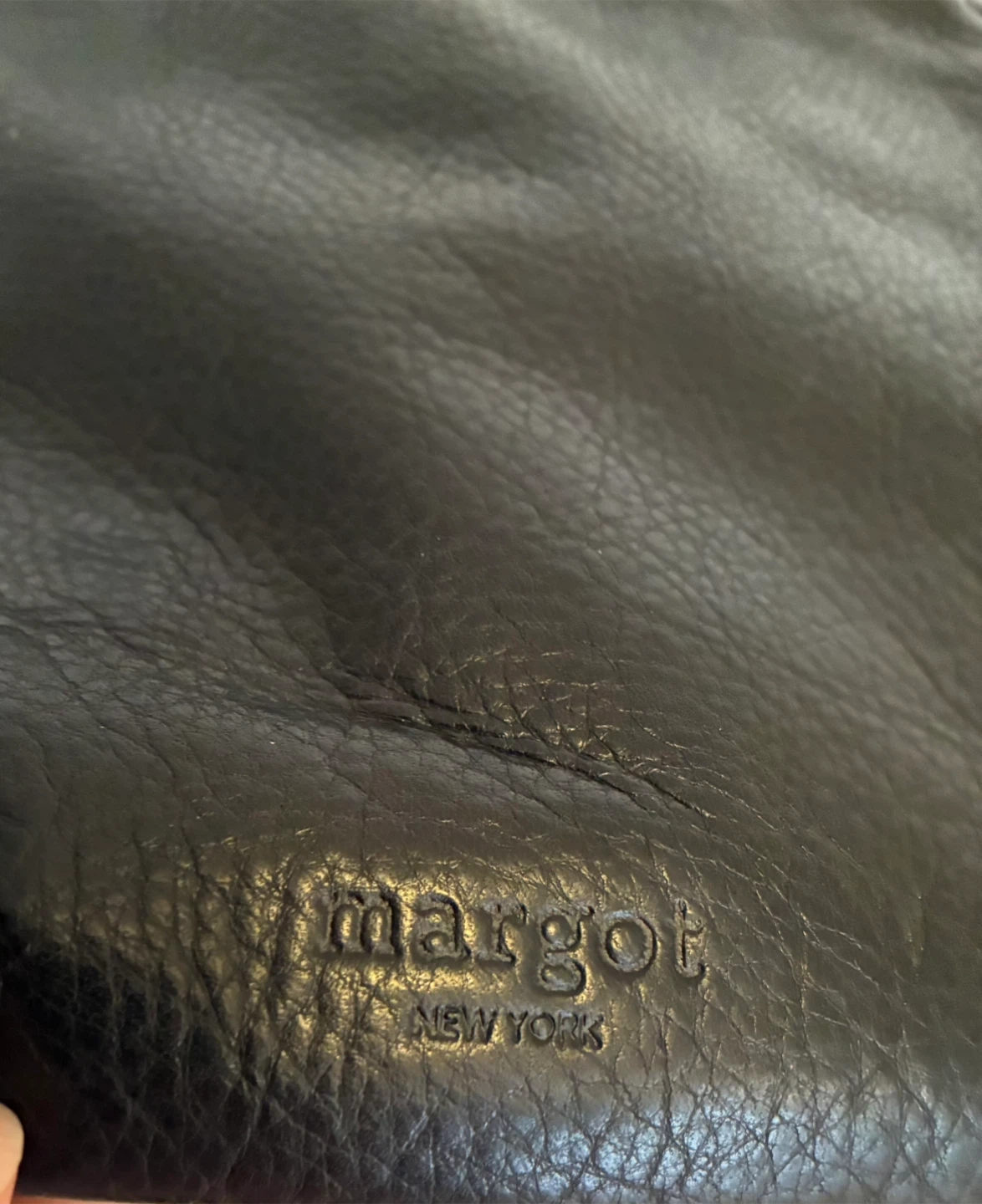 Margot New York black leather crossbody bag.