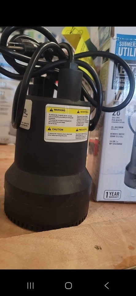 Submersible utility pump for water removal or emptying shallow flooded areas. Corrosion-resistant, reinforced thermoplastic construction. Oil-filled motor for maximum heat dissipation.