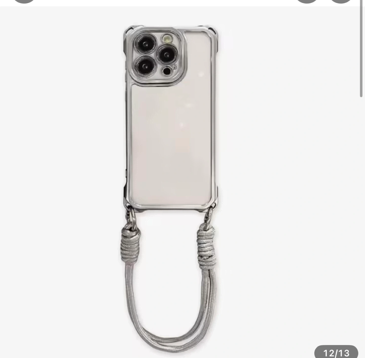 silver iPhone 17 pro max caseMade of durable material with a built-in lanyard for easy carrying. Features MagSafe compatibility.