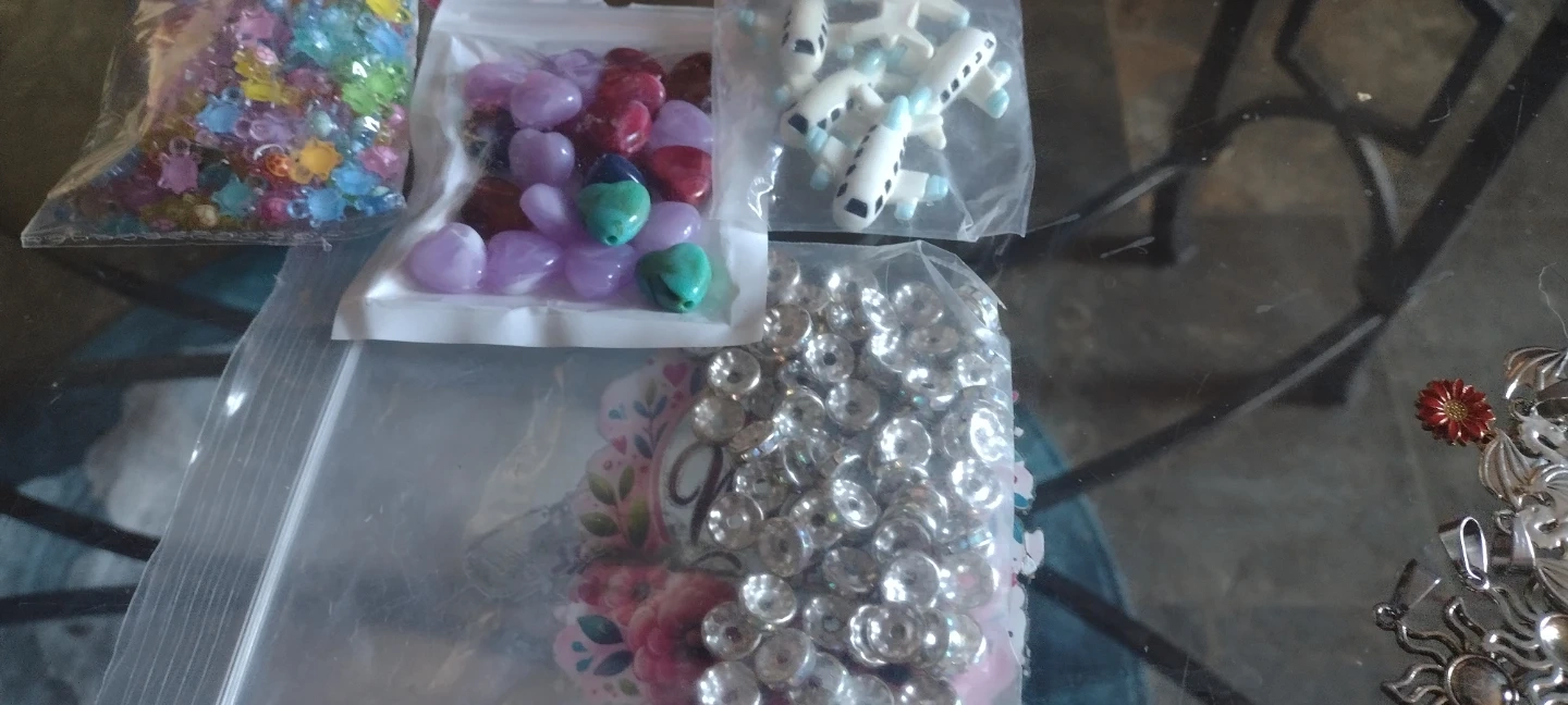 Selling a variety of craft supplies! There's a big mix of colourful beads, foam shapes, glitter, and other fun bits and bobs! Charms and Attachments. King chain rings and keychain fobs. . Ceramic charm to make a assorted crafts.Perfect for kids' crafts or your own projects. I have more things to add. Craft Paint, Rope necklaces.