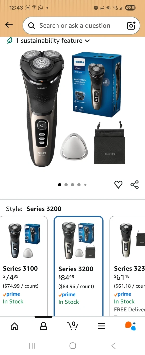 This Philips Shaver Series 3200 is designed for comfortable, clean shaves. It's a wet and dry electric shaver. Includes a travel pouch and protective cap. Great for home or travel!
