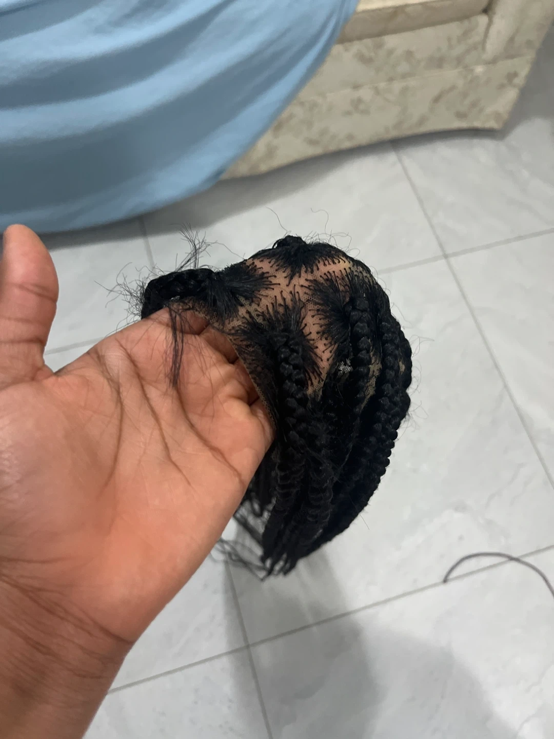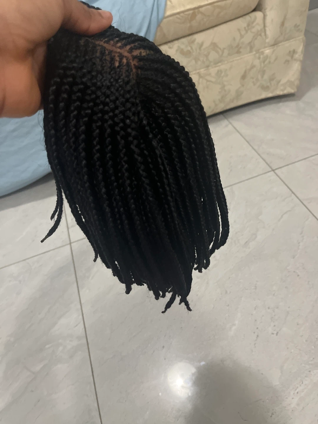 3 different Black braided wig. Features braided strands attached to a lace cap. Provides a new hairstyle.