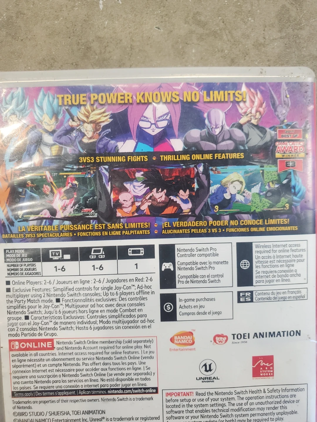 This is the Dragon Ball FighterZ game for Nintendo Switch. It supports up to 6 players online with wireless internet access. Online gameplay requires Nintendo Switch Online membership.