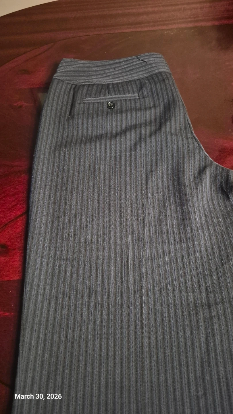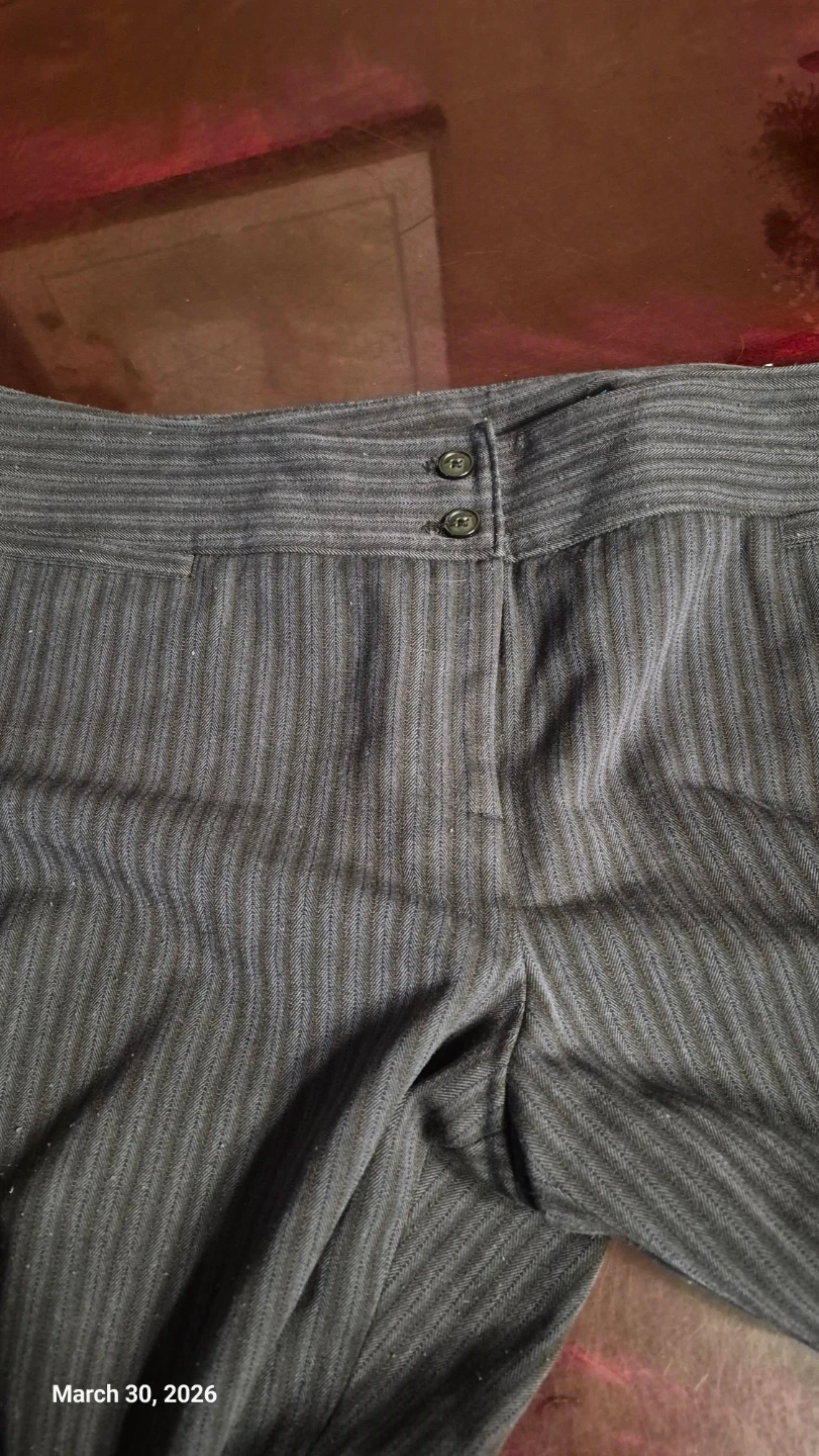 Women's dress pants from APT. 9. Features a pinstripe pattern and double-button waist. Made from a polyester and rayon blend. Size is 16 Regular.