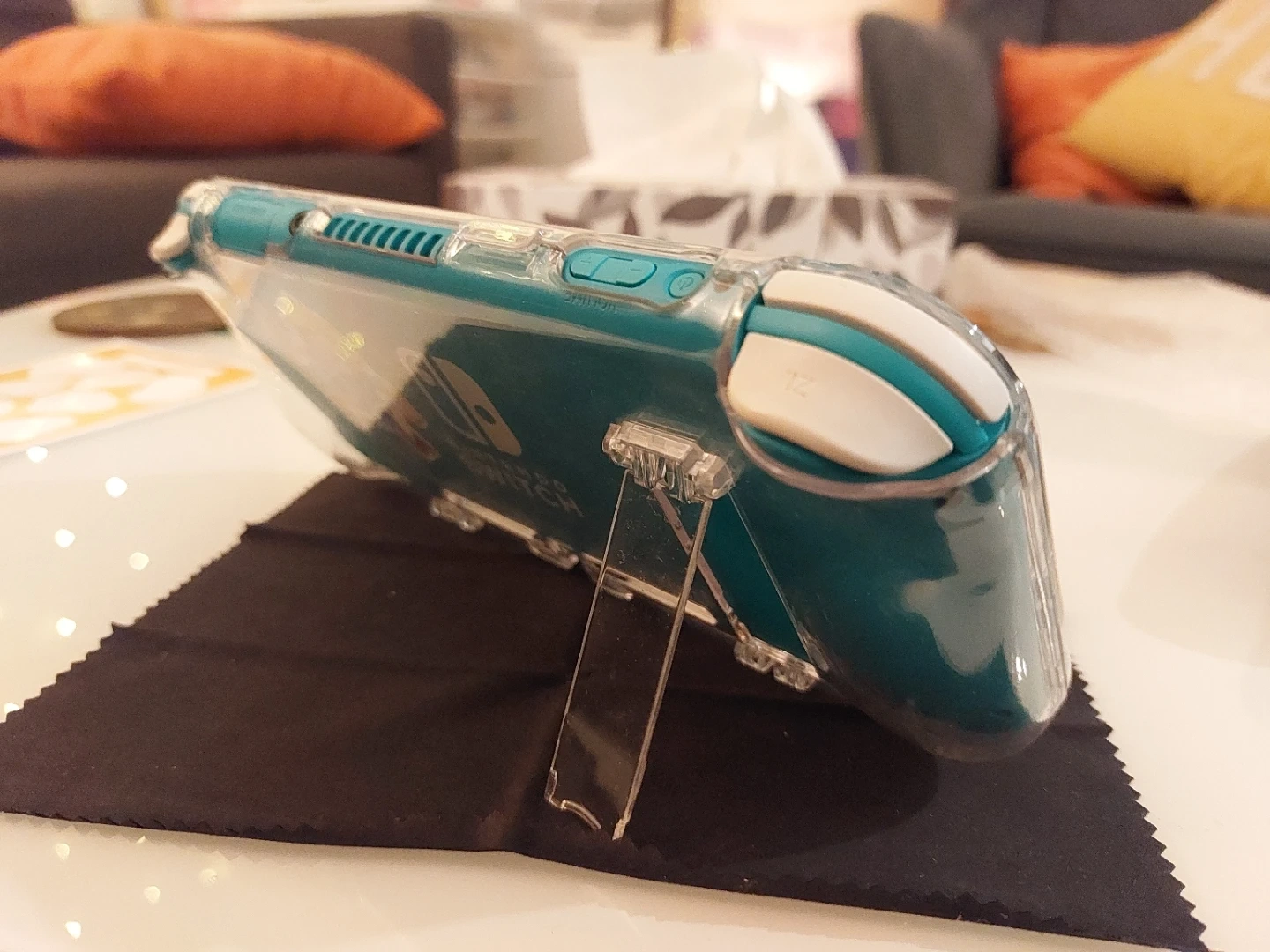 Selling my Switch Lite as I haven't used it in ages. Mint condition, no scratches, comes with clear protective case from Hori. Case has a built in kick stand.