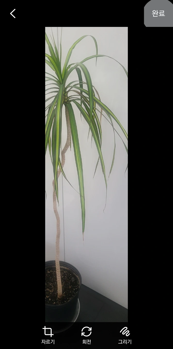 A tall Dracaena Marginata plant in a black pot. It has slender, arching leaves with green and yellow stripes and a twisted brown trunk. This plant brightens up any indoor space. It's approximately 4 4/6 feet-140 cm tall.