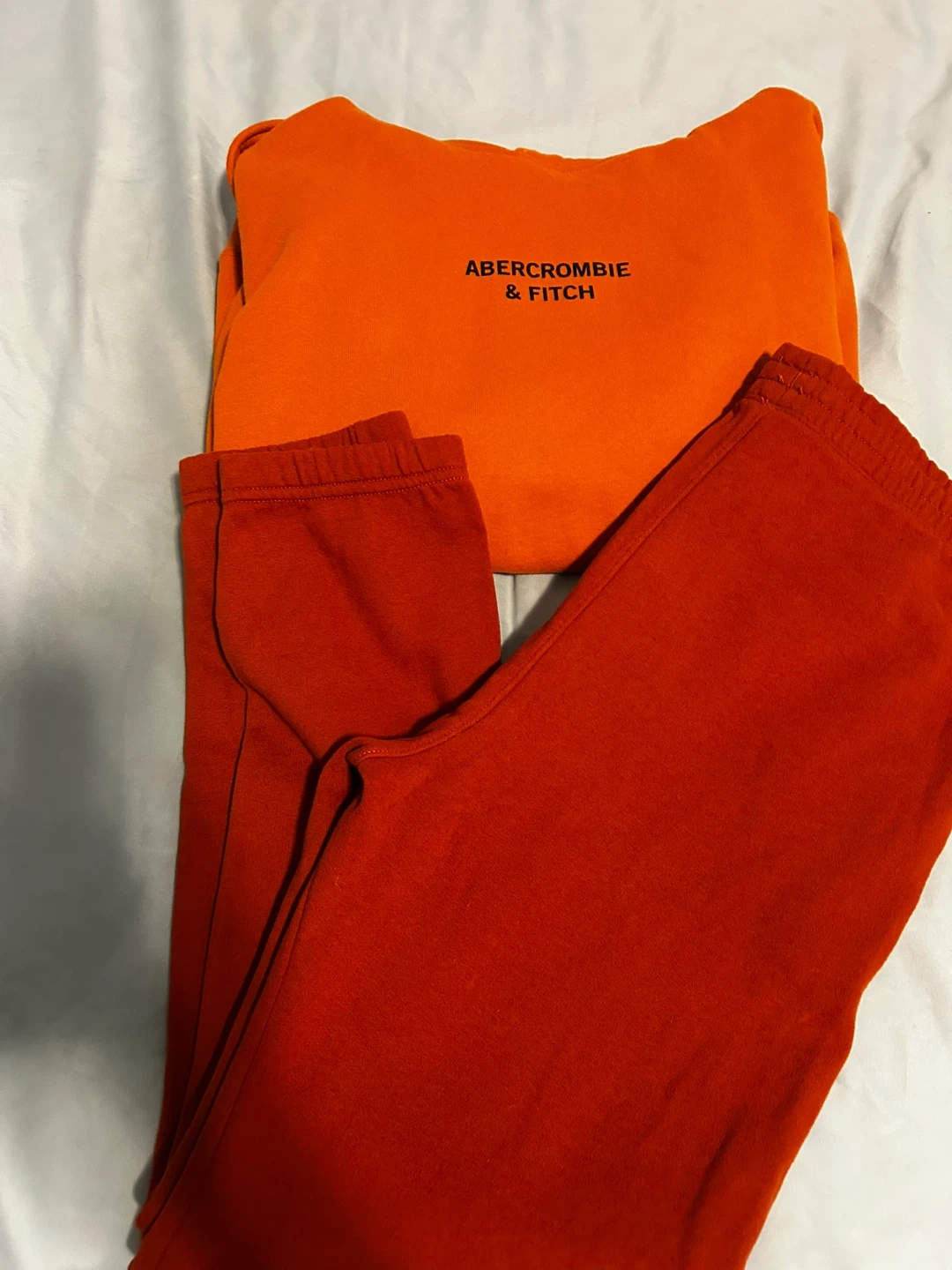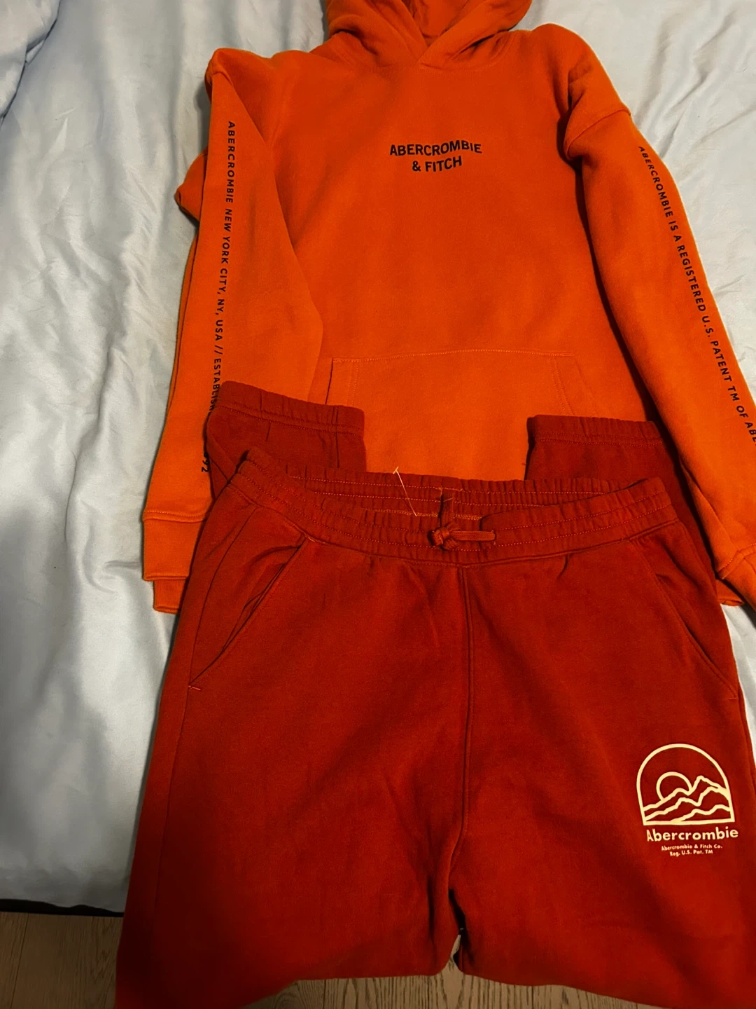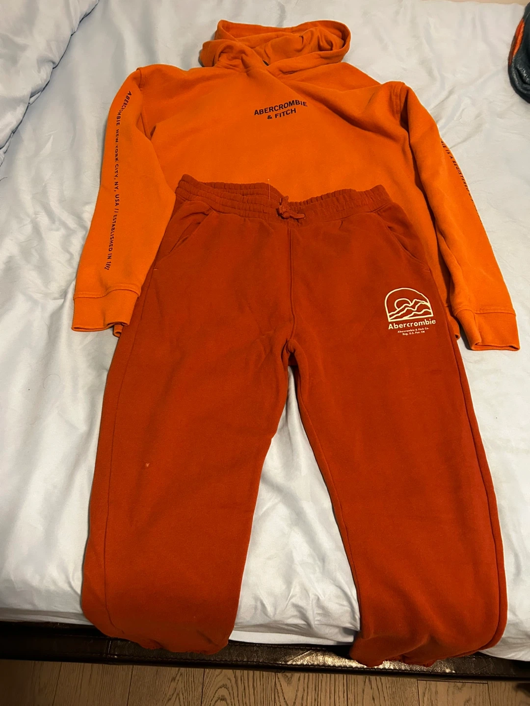 This Abercrombie Kids set includes an orange hoodie and brick colour sweatpants. They're a relaxed fit and size 17/18.