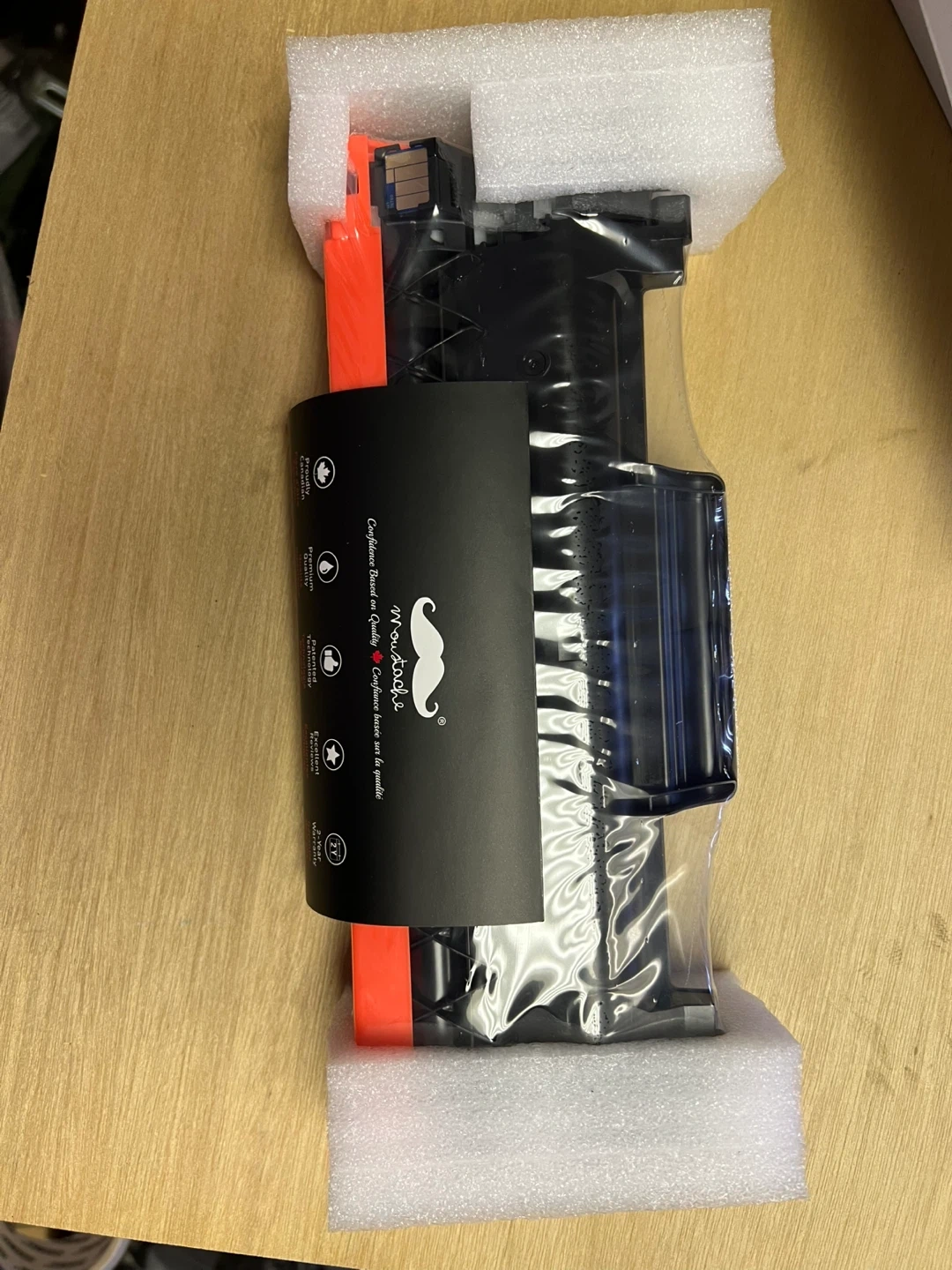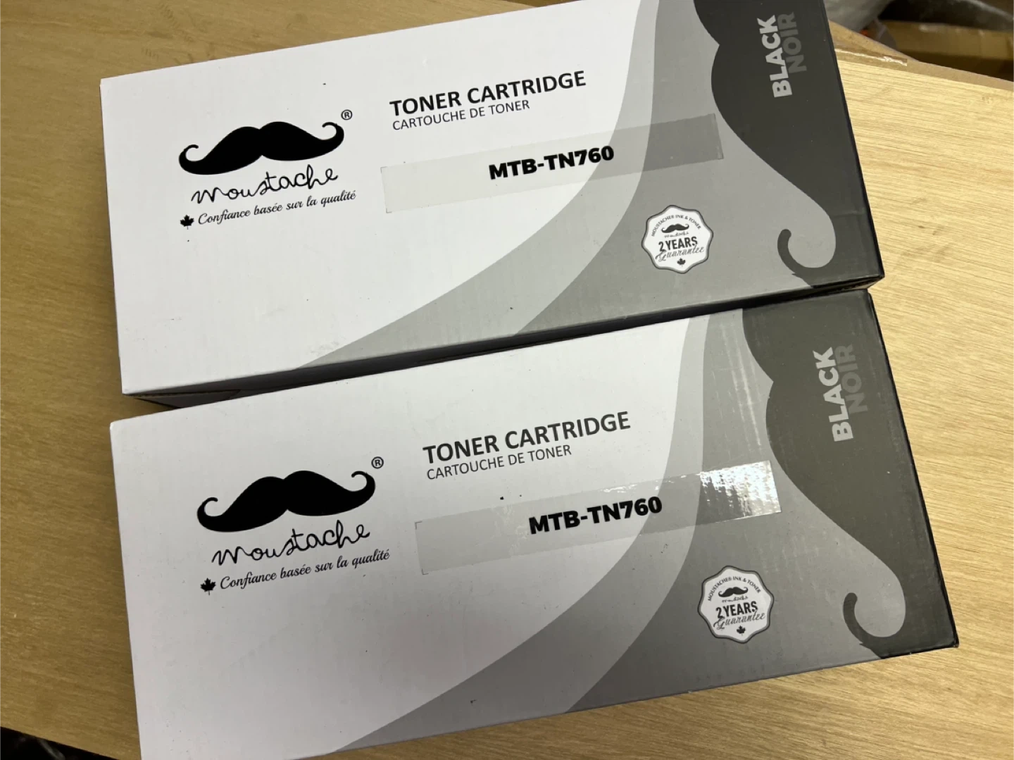 This Moustache toner cartridge is for black ink. It's a model MTB-TN760. This would be useful for anyone needing a replacement toner cartridge for their printer.
