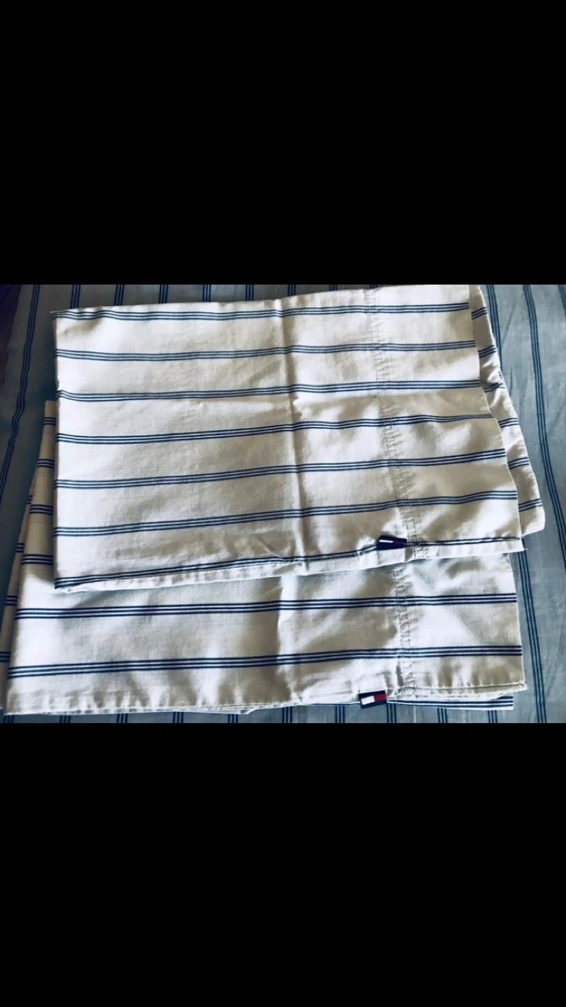 A classic pair of Tommy Hilfiger Pillowcases (they seem larger than standard). In the signature blue naval stripes design & colors that Nautica is famous for.