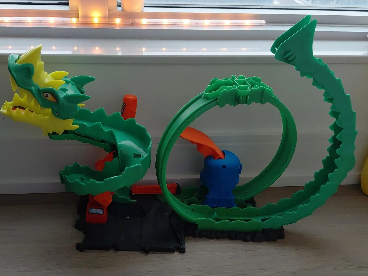 Selling a Hot Wheels Dragon Drive Firefight track set! It's in great shape and ready for some action-packed fun. The set features a cool dragon design and a loop for cars to zoom through. Perfect for any Hot Wheels enthusiast