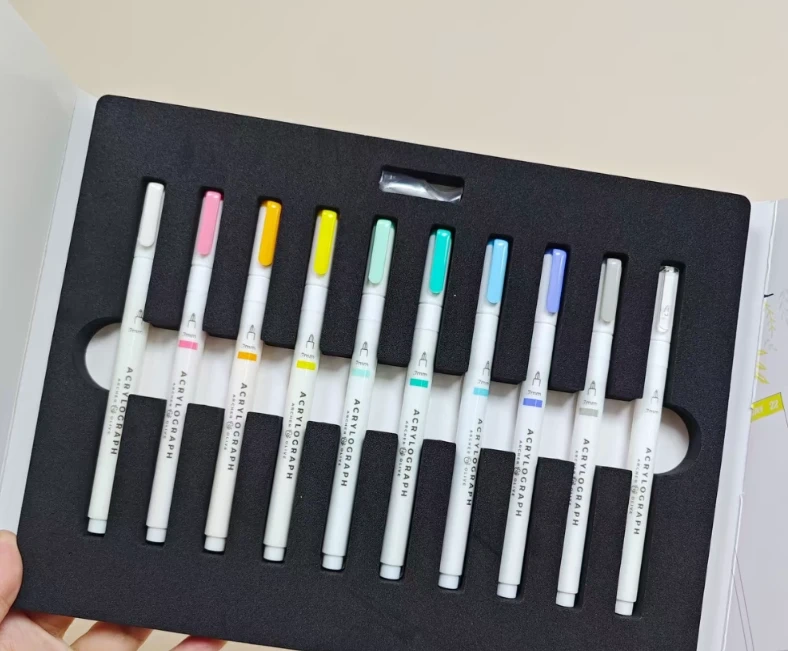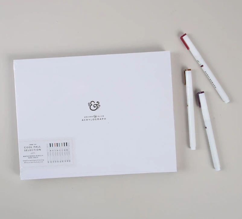 This set includes 10 Archer & Olive Acrylograph pens in a Cool Fall selection. These are water-based acrylic pens. They're great for adding detail and colour to your projects!