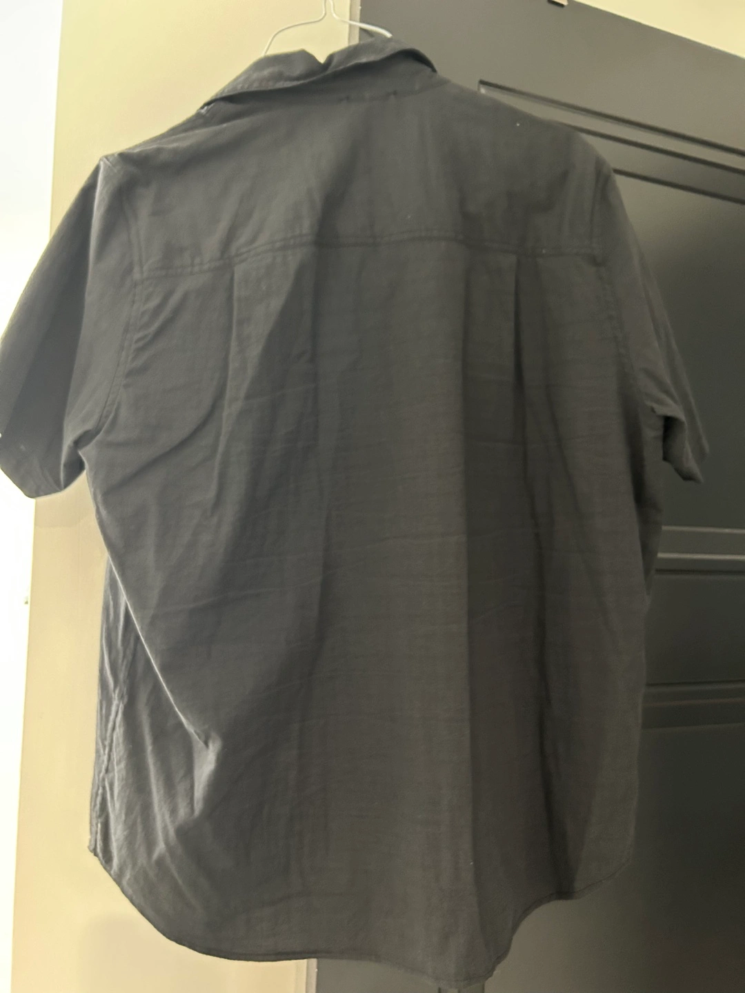 Men's short sleeve button-down shirt. Black colour. Two chest pockets. UPF sun protection. Great for casual wear.