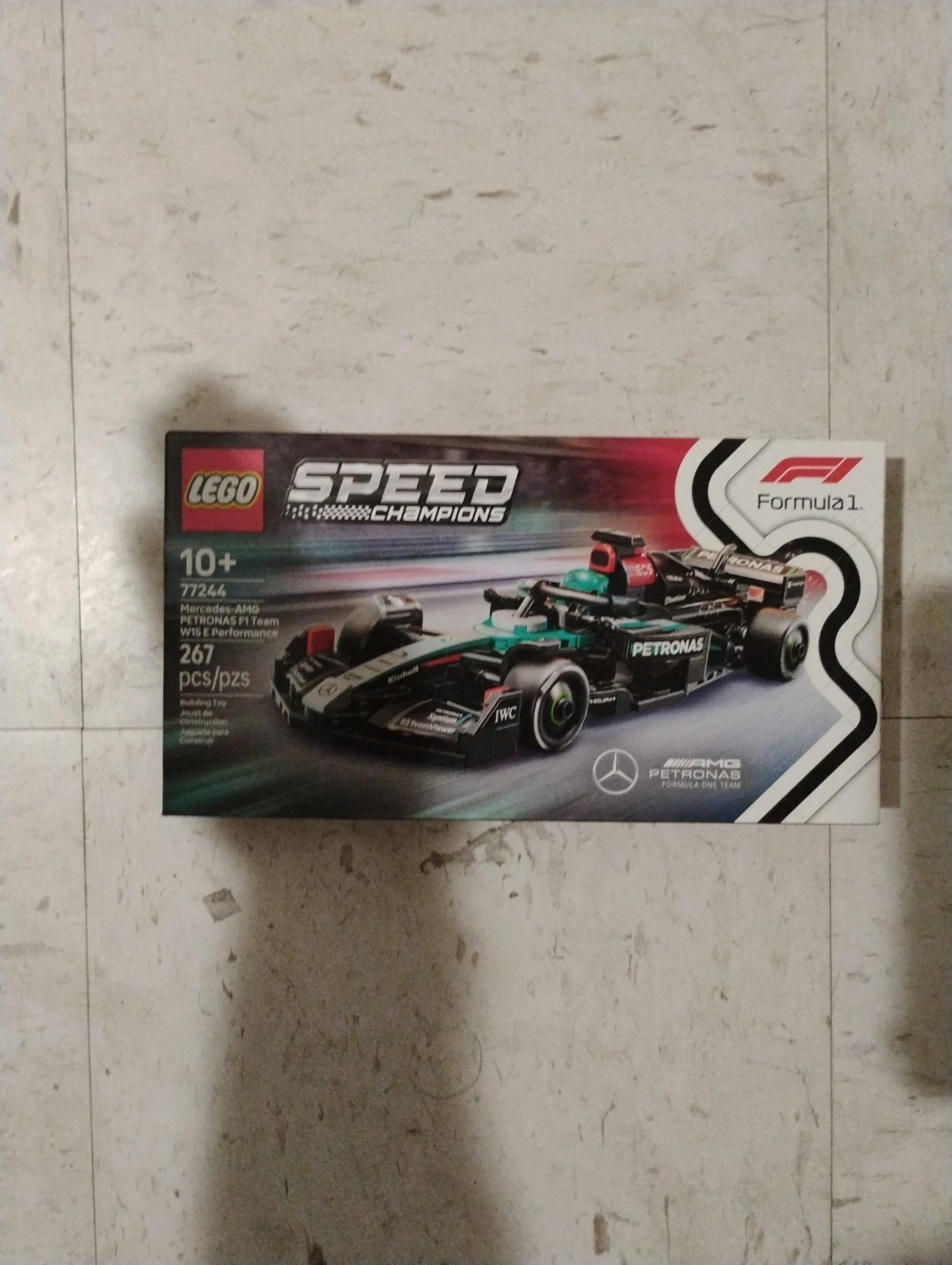 This is a new, sealed LEGO Speed Champions set featuring the Mercedes-AMG Petronas Formula 1 W12 E Performance race car. It includes 261 pieces for a fun building experience. The set is recommended for ages 10 and up.