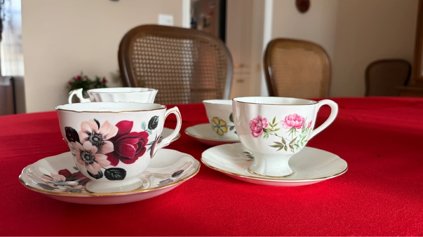 Set of 4 Vintage Teacups and Saucers