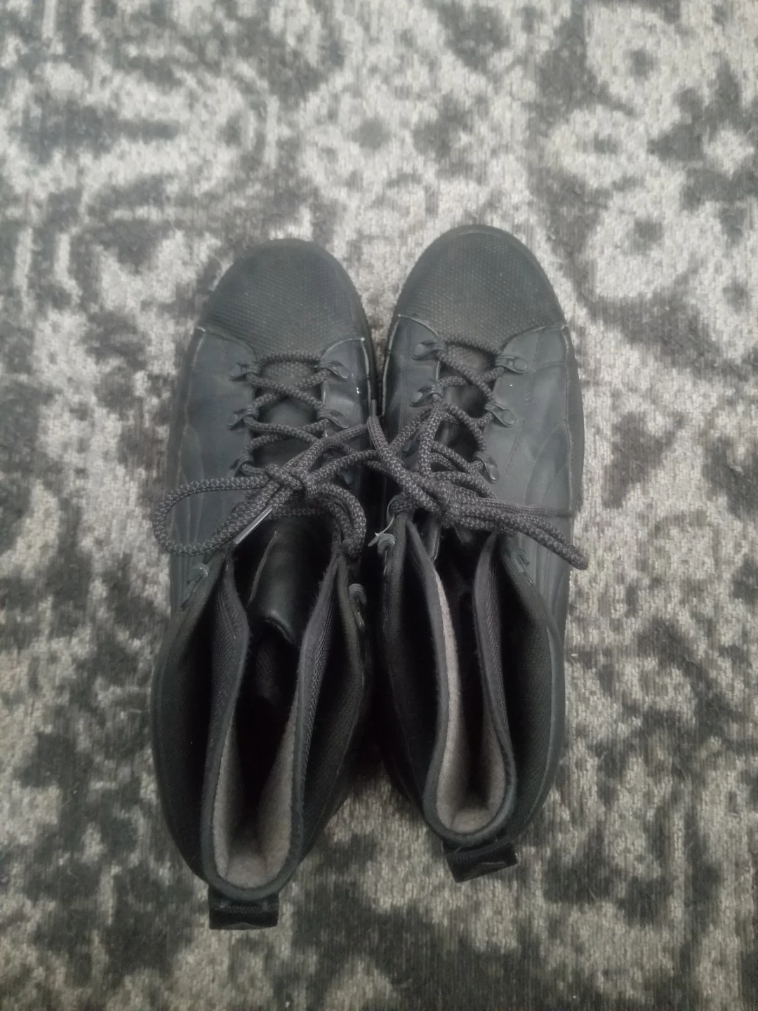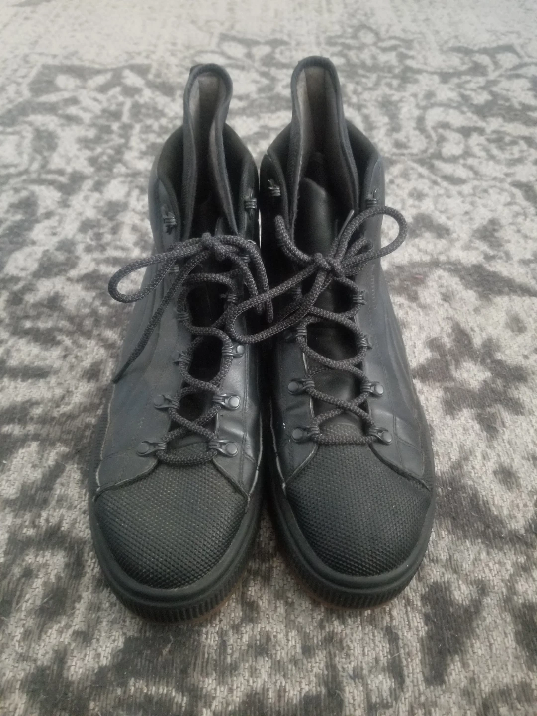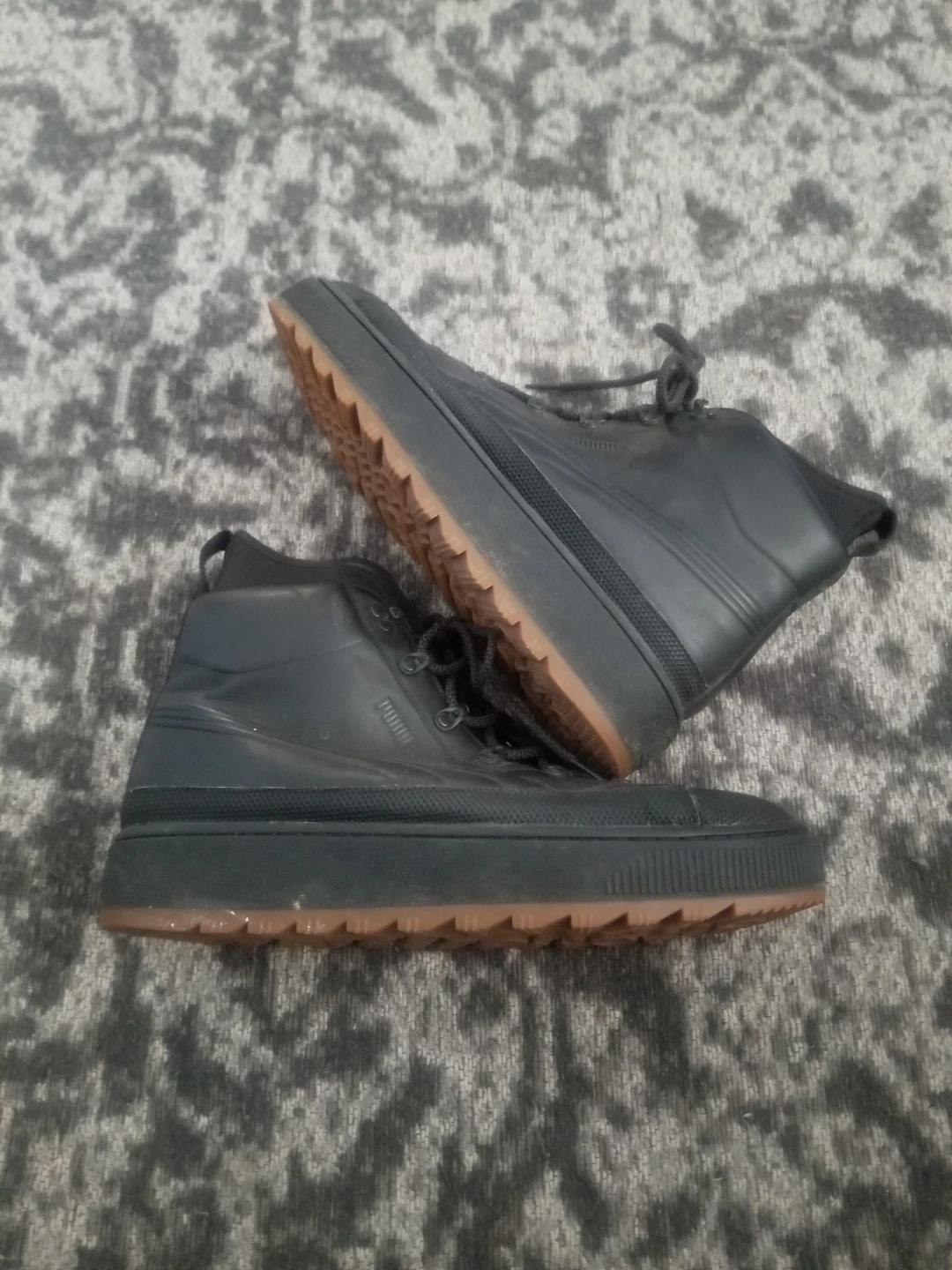Mens Puma Black Hightop Winter Platform boots with a brown sole. They're lace-up style. The material appears to be leather and textile. These boots are great for casual wear. Completely Brand New Never Worn Just Looking to Sell Especially with the Current Winter Season! π₯π Just Asking $80 Really Good Price!