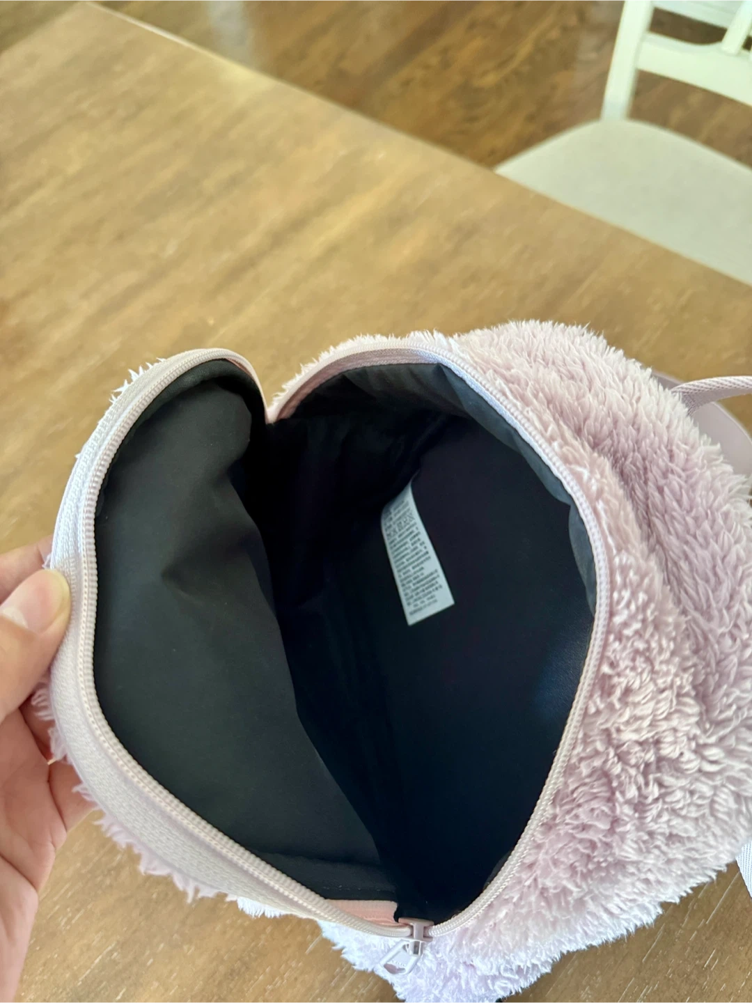 This Uniqlo cute pink fuzzy mini backpack is super soft and plush. It features a zippered main compartment and a front zippered pocket. Perfect for carrying essentials on the go!