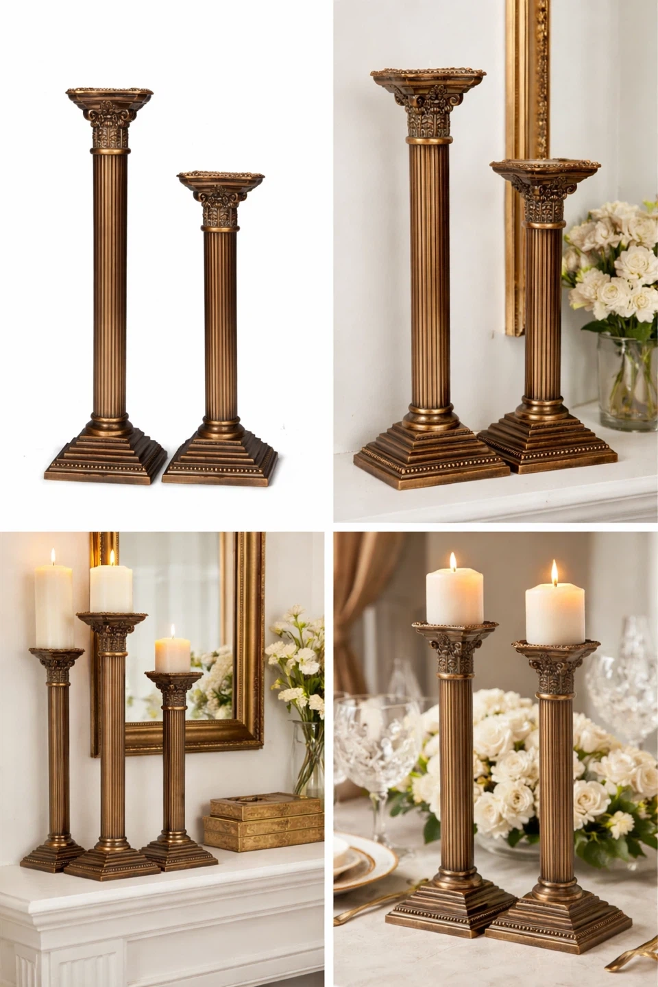 Pair of Decorative Column Candlestick Holders
