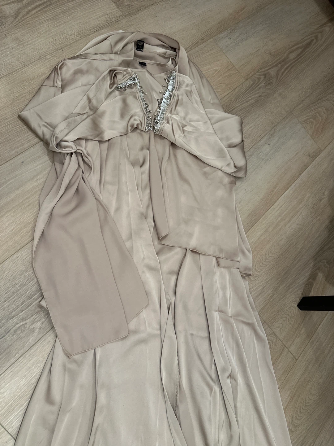 3-pcs Mariam’s Collection Beige Beaded Abaya