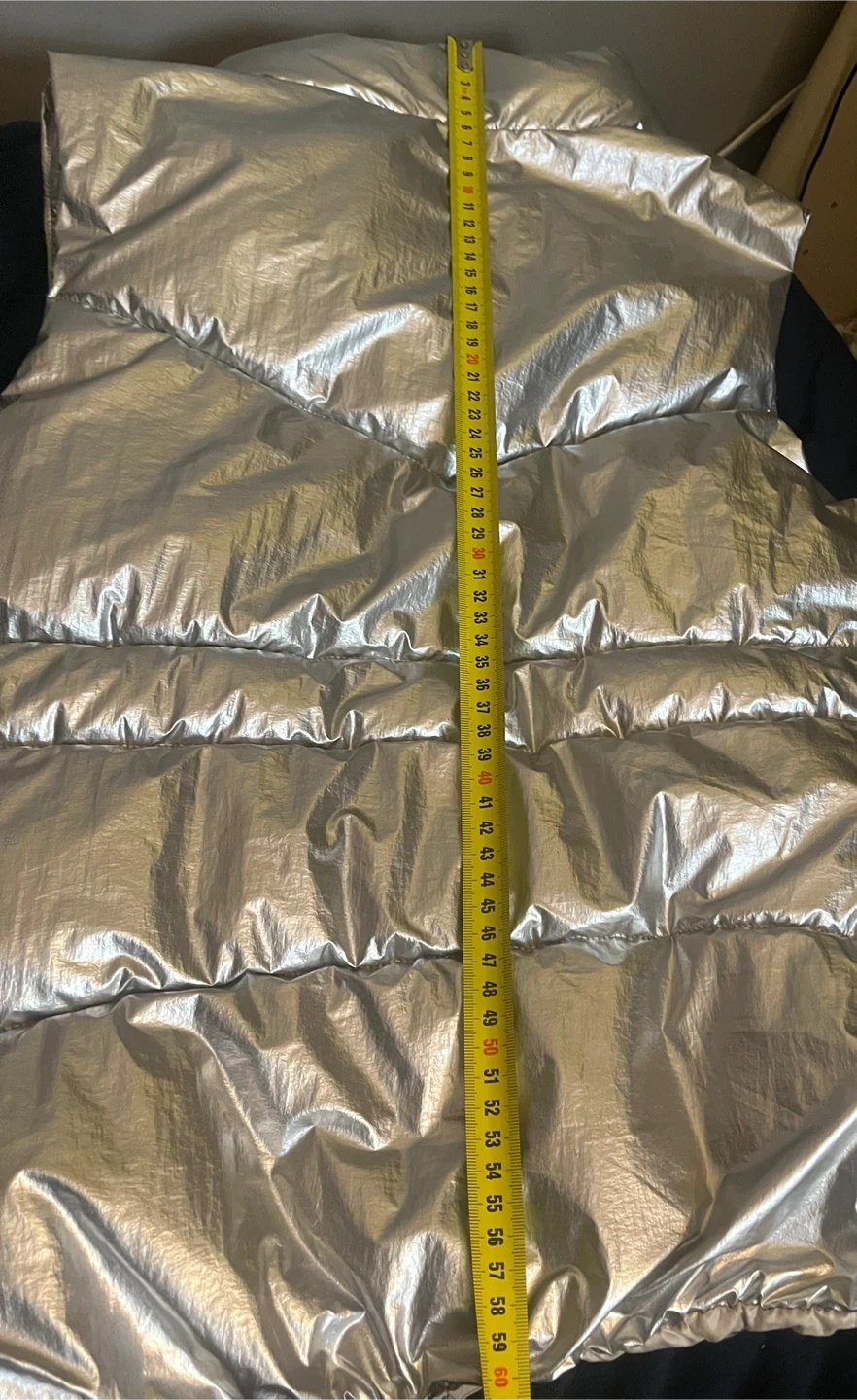 Selling a Zara Kids puffer vest in a shiny silver colour! It's a size 11-12 (CM 152). Perfect for layering and adding a bit of sparkle to any outfit