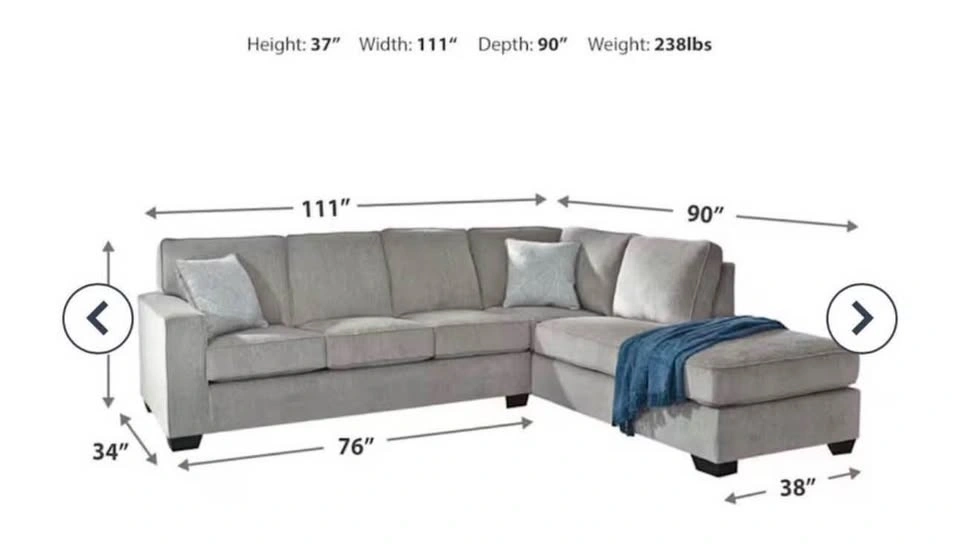 Includes 2 pieces: right-arm facing corner chaise and left-arm facing sofa.