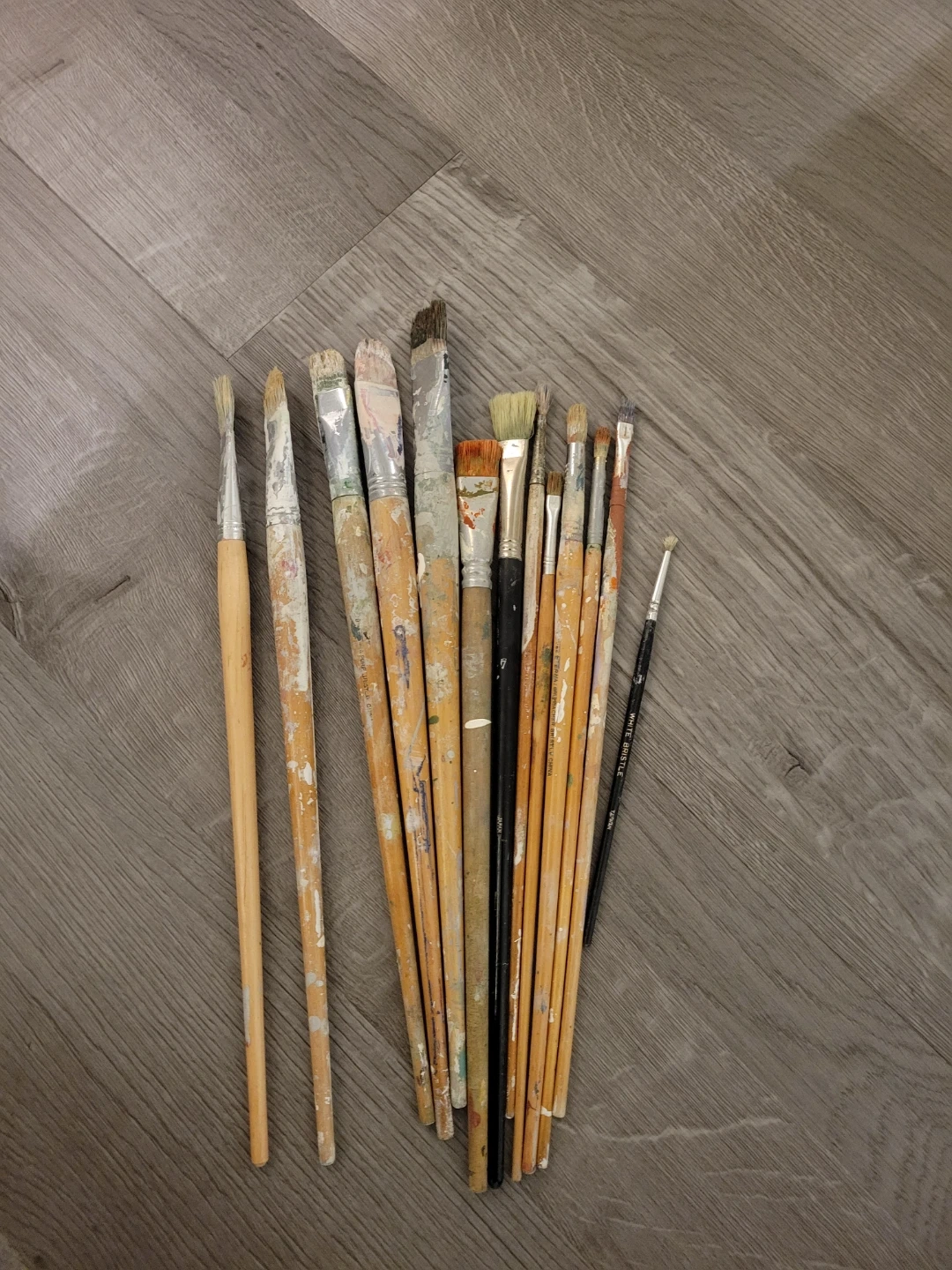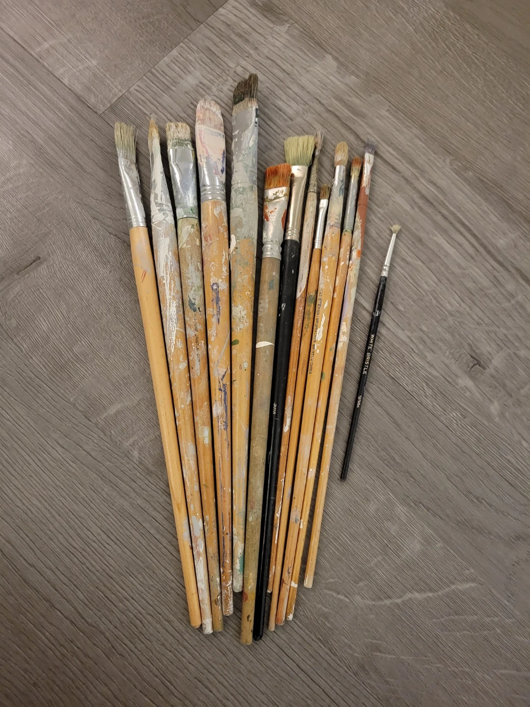 A collection of used paintbrushes, perfect for art projects or crafts! They show signs of use, but still have plenty of life left in them. Great for various painting techniques