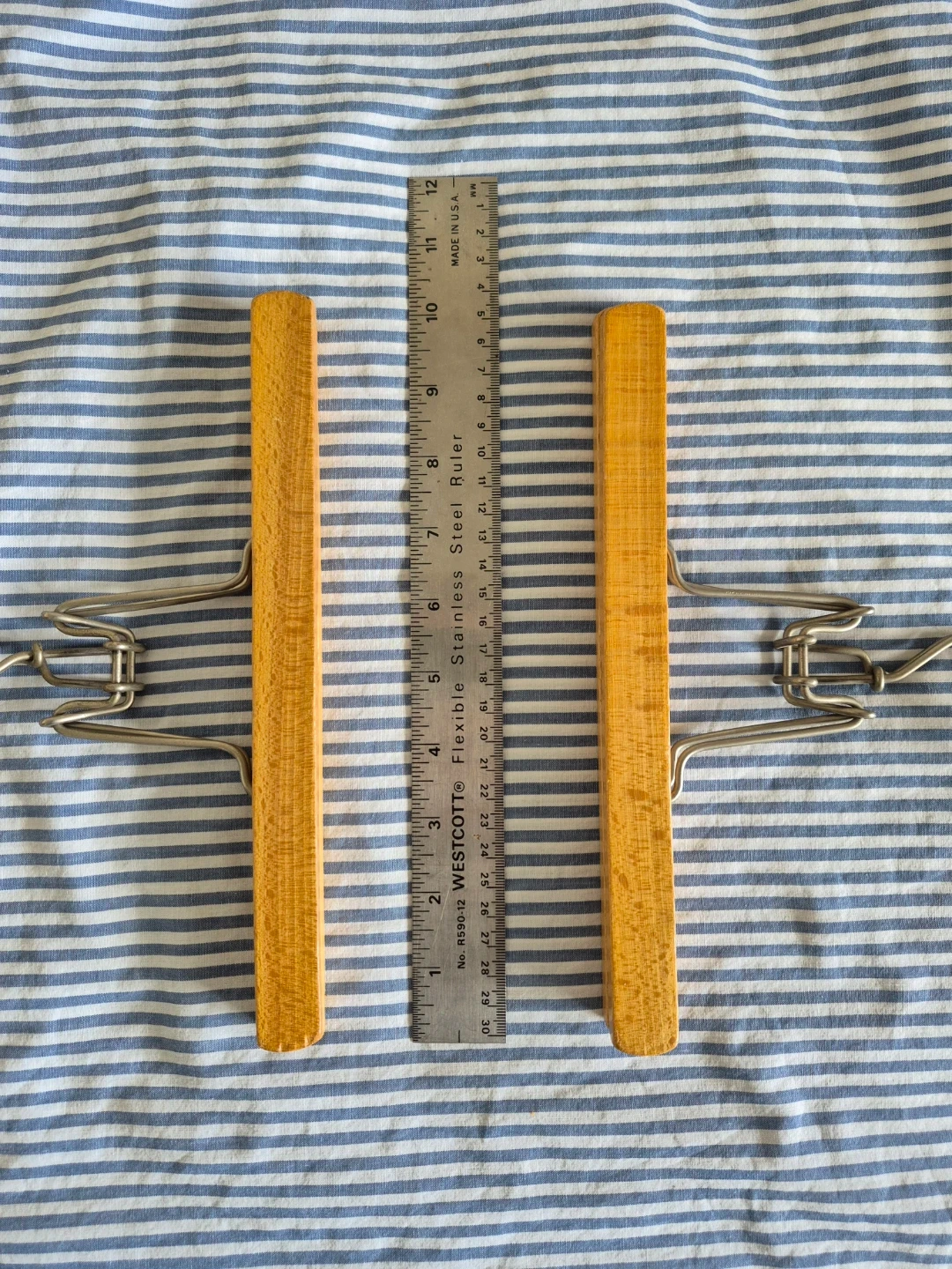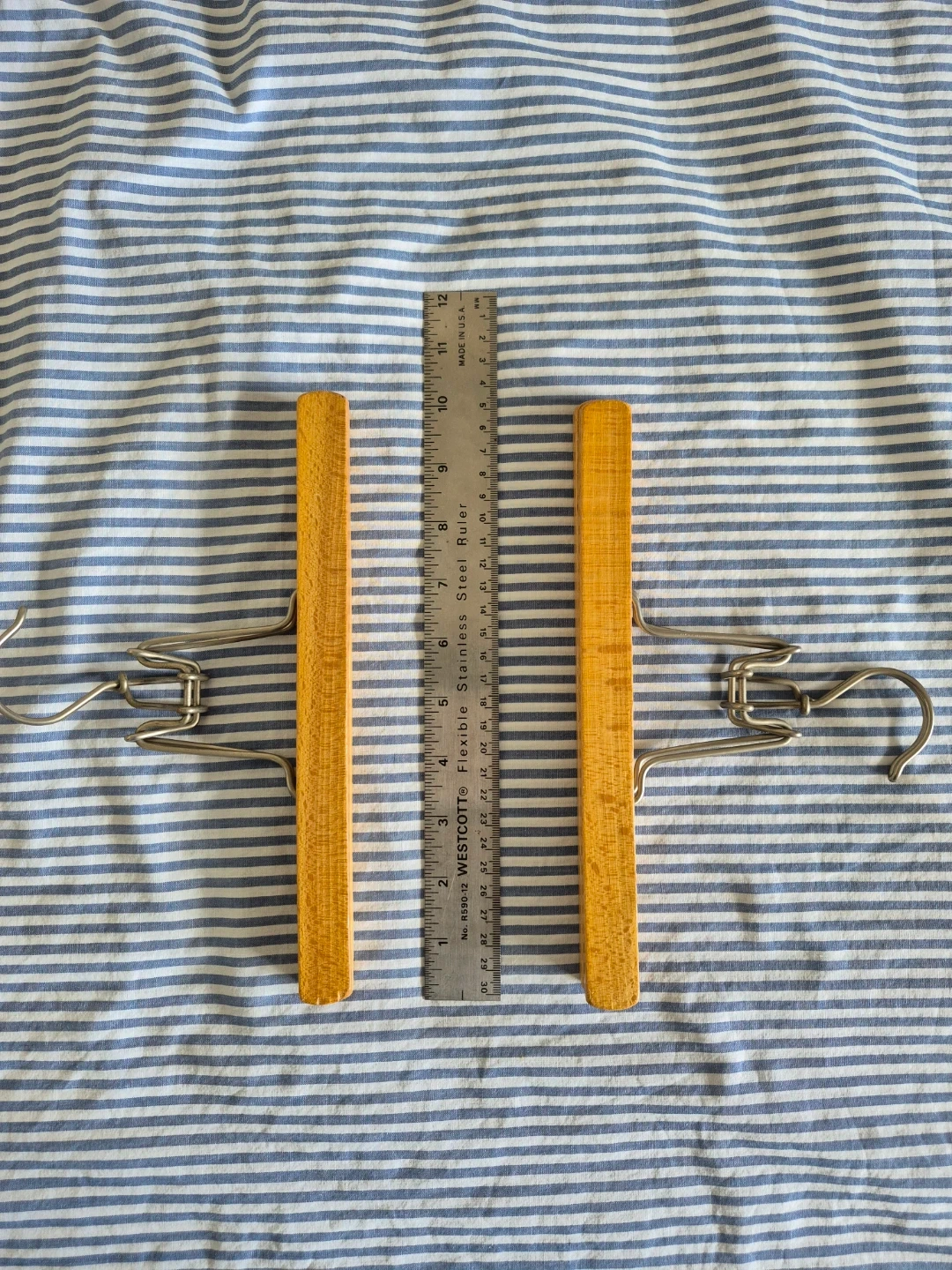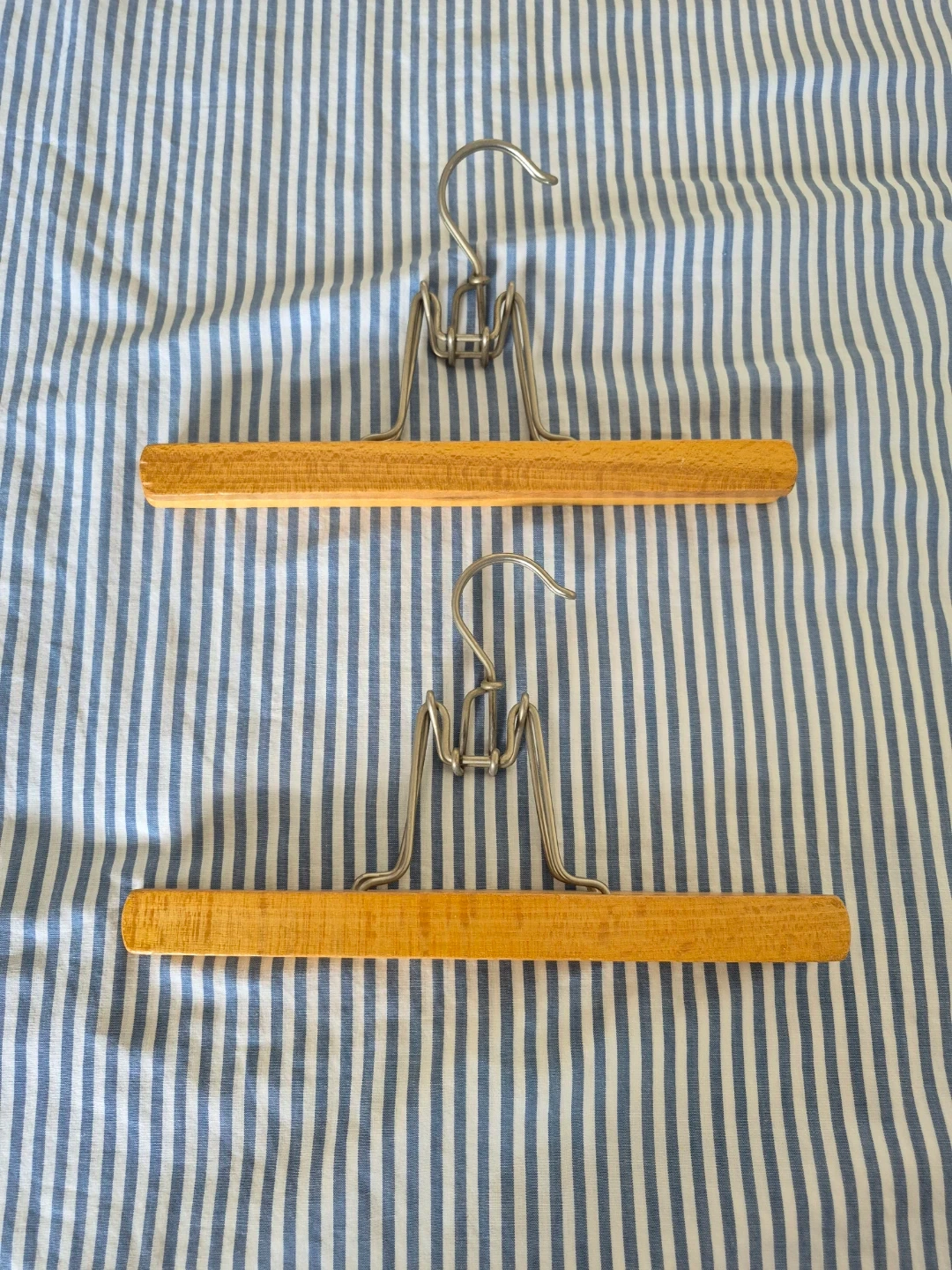 Vintage solid wood clamp hangers for pants and skirts.