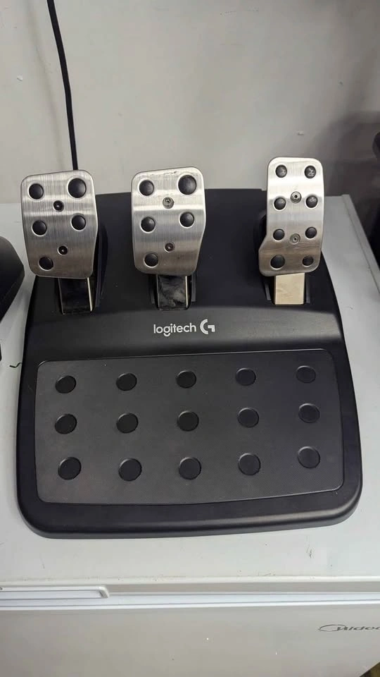Steering wheel and pedals. Tested on PC and working perfectly. Product says compatible with PlayStation, PC and Xbox. See last photos for two small slices in the steering wheel, which do not affect use. I want you to see the damage before pickup.