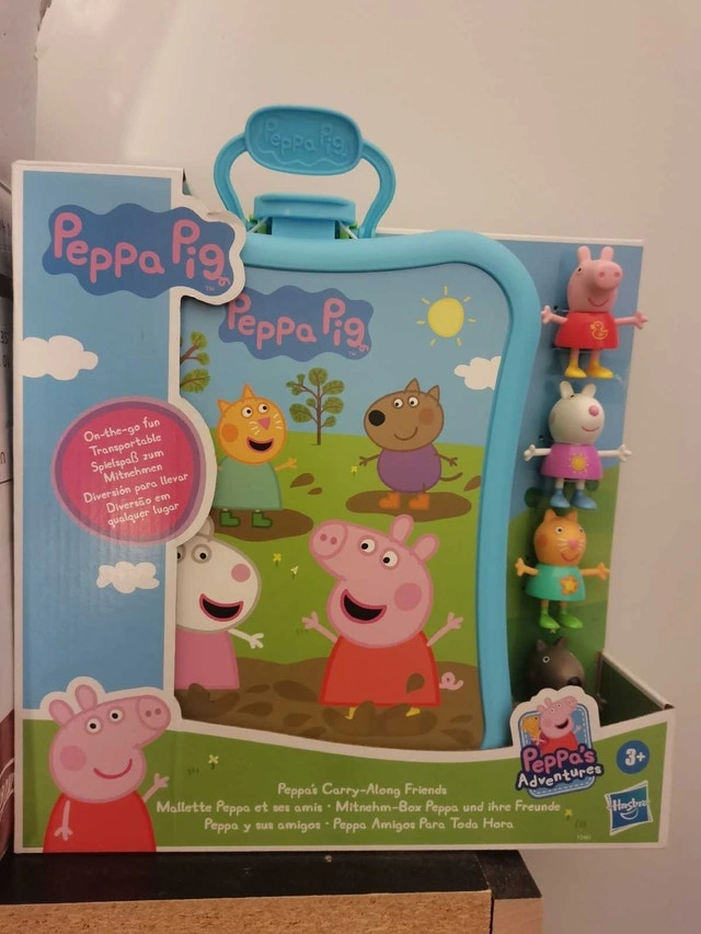 Peppa Pig Peppa's Club Friends Case Preschool Toy, Includes 4 Figures, Features Handle for On-the-Go Fun and Easy Storage, for Ages 3 and Up brand new in package, great gift. Now kids can take Peppa Pig and her friends on the go! With the Peppa's Carry-Along Friends case, preschoolers ages 3 and up can carry these cute pals with them on the go -- whether they're riding in the car or just out in the yard (searching for muddy puddles, maybe?). Inspired by characters seen in the animated series, this set includes 4 figures: Peppa Pig, Suzy Sheep, Danny Dog, and Candy Cat. Kids will love to reenact scenes that they saw on tv or imagine their own fun adventures! When playtime is all done, kids can place the figures neatly inside the included adorable carrying case, so that they're ready for the next adventure. Play out fun with these playgroup pals! The included carrying case comfortably holds the Peppa Pig, Suzy Sheep, Danny Dog, and Candy Cat 3-inch figures for easy organization and cleanup. With the Peppa's Carry-Along Friends toy, kids can play out favorite on-the-go stories from the show or imagine scenes from Peppa’s day. Kids and Peppa fans ages 3 and up will love to receive this toy as a holiday gift or birthday present.