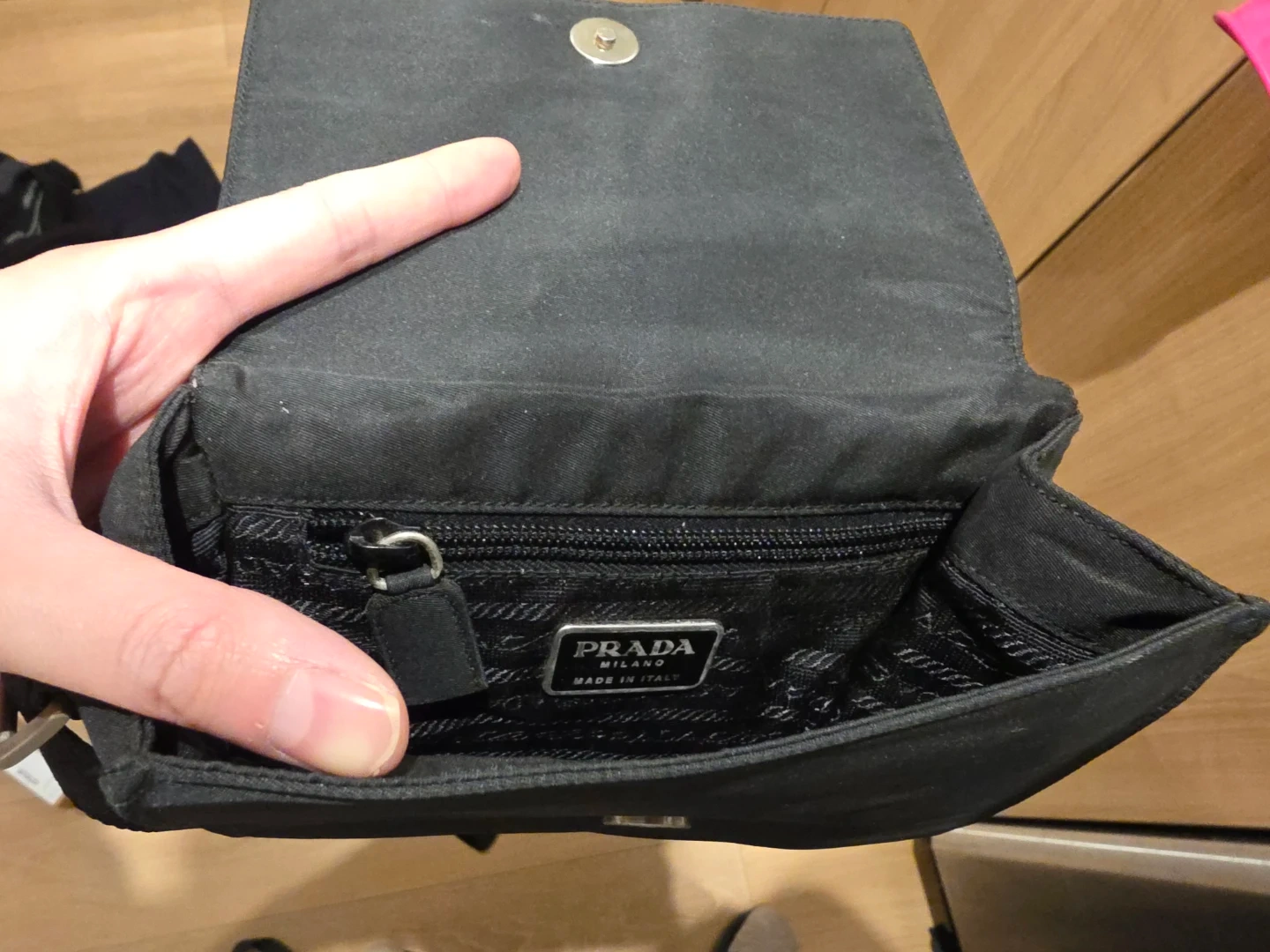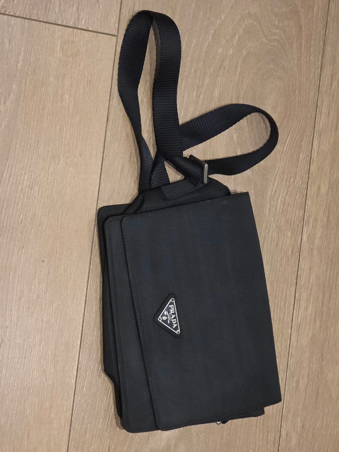 Selling a small Prada Purse in black. It's in great condition and perfect for carrying essentials on the go. The bag features the classic Prada logo and a convenient adjustable strap.
