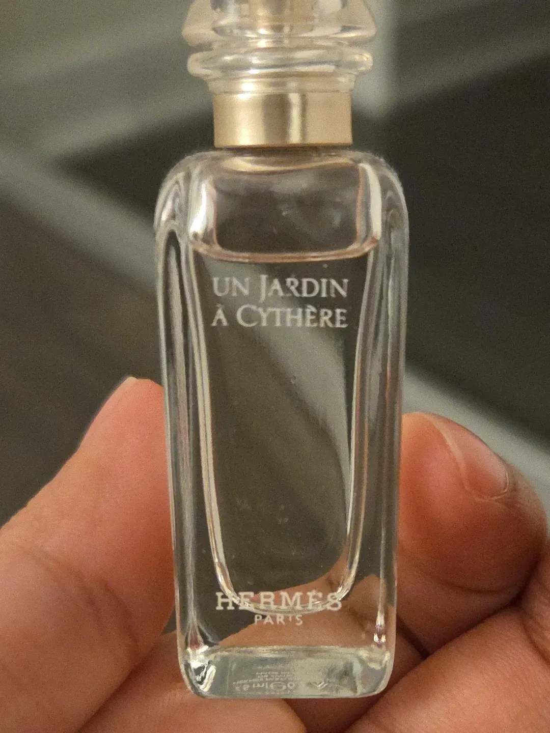 Hermès Un Jardin à Cythère Eau de Toilette miniature bottle. It's a delicate scent perfect for any occasion.