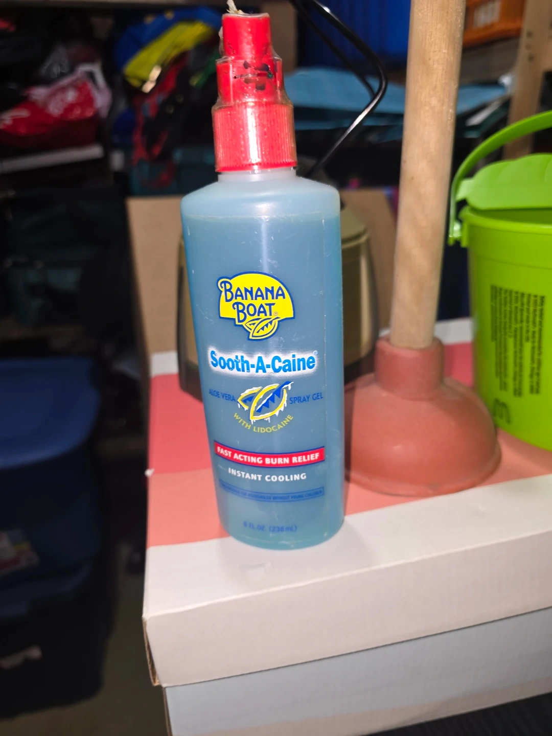 This Banana Boat Sooth-A-Caine spray gel contains aloe vera and lidocaine. It's fast-acting for burn relief with instant cooling. 8 fl oz (236ml) bottle.