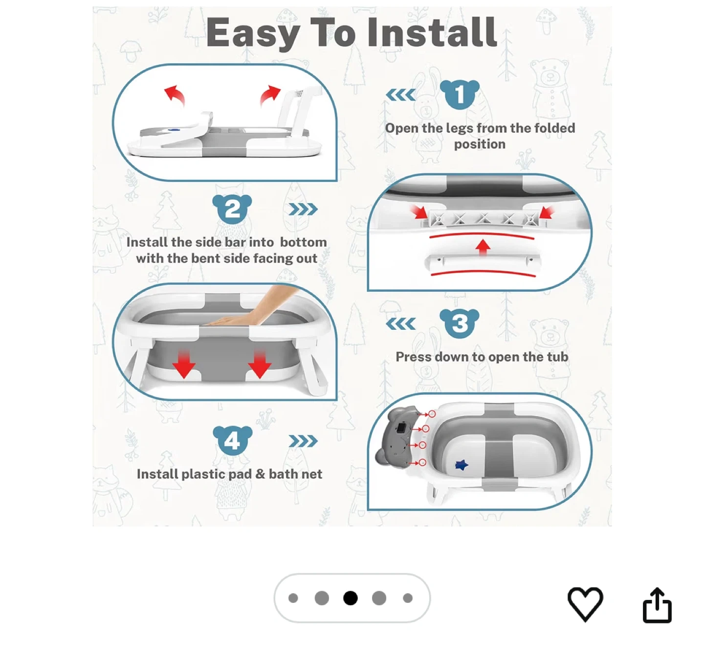 This handy collapsible baby bathtub is designed for convenience. It's perfect for babies aged 0-18 months. The tub measures 23.6in in length and 16in in width when open. It includes a comfortable pad and bath net for your little one.