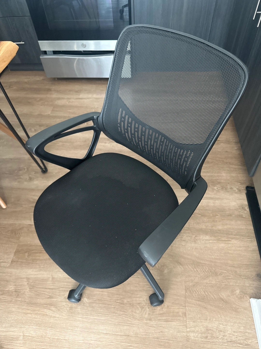 Selling a black office chair in great condition. It's perfect for a home office or study space. It has a comfortable seat and back, and it rolls smoothly. Ready for a new home!