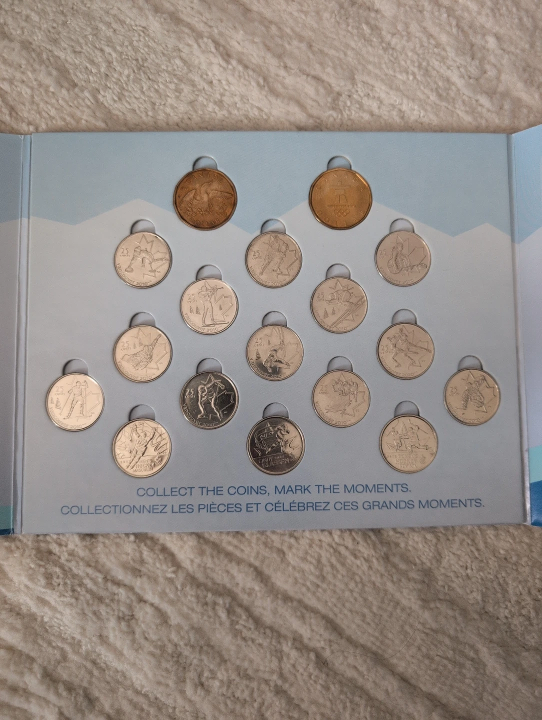 This set features circulation coins from the Vancouver 2010 Winter Olympics. The Royal Canadian Mint crafted these special coins to commemorate the event. Collect them to mark the moments!