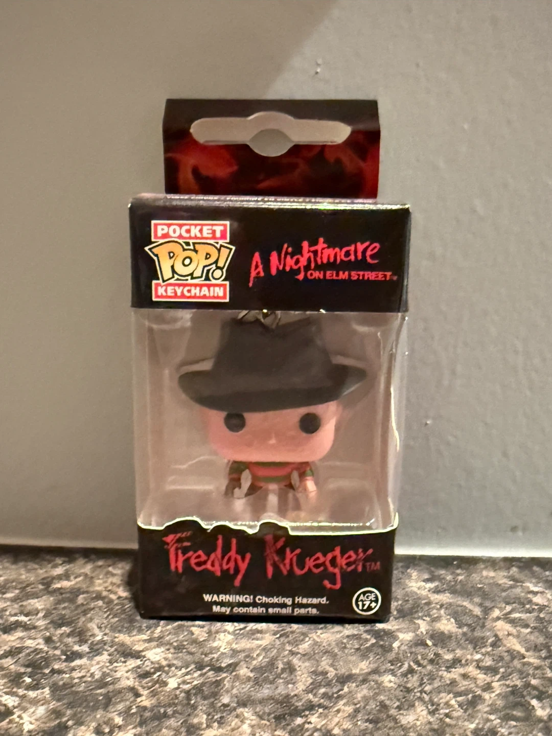 This is a Funko Pop! Pocket keychain featuring Freddy Krueger from A Nightmare on Elm Street. It's an officially licensed collectible. WARNING: Choking Hazard. May contain small parts. Age 17+.