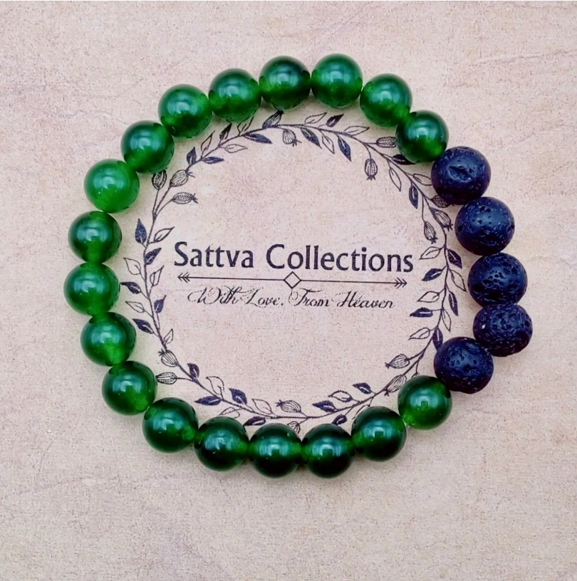 Crafted with intention, this bracelet harnesses the natural energies of Green Jade and Black Lava beads to provide a deep cleanse for your body. Green Jade supports a healthy metabolism, while the Black Lava beads aid in filtering and strengthening vital organs such as the kidneys, gall bladder, adrenal glands, and spleen. Elevate your well-being and embrace a renewed sense of vitality with this unique bracelet. Wear it daily to revitalize your body and promote inner harmony.