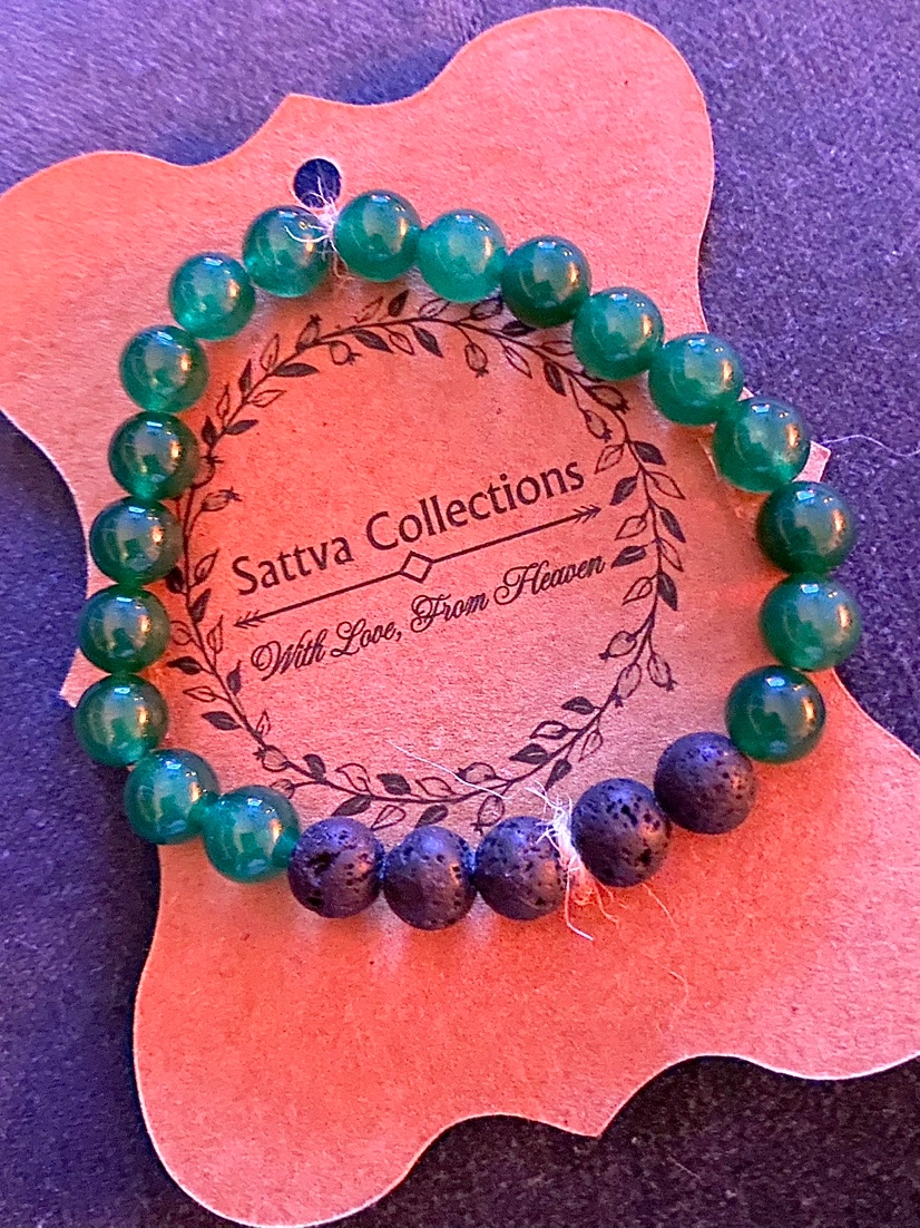 This bracelet is called 'Deep Cleanse' in 8mm Green Jade and black Lava beads.