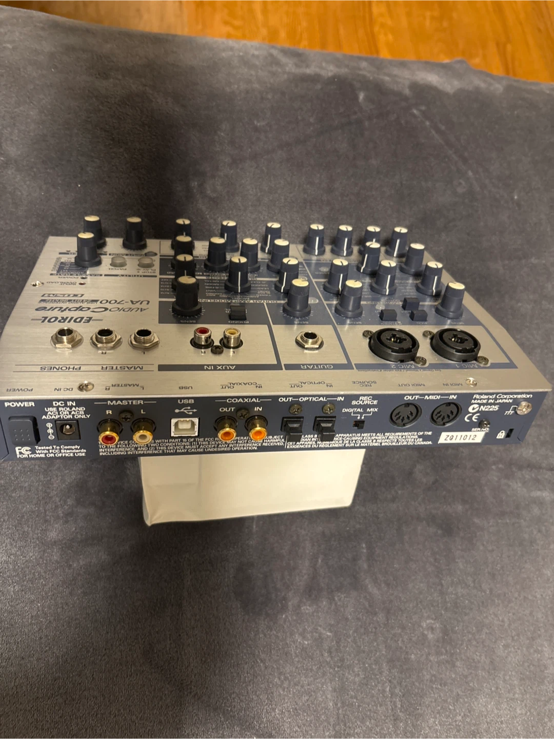 This is an Edirol Audio Capture UA-700 USB audio interface. It's designed for guitar amp modelling, mic modelling, and has various effects like chorus and reverb. It also includes a noise suppressor and EQ. It's a versatile unit for music production. Comes with BOSS PSA power adapter included.