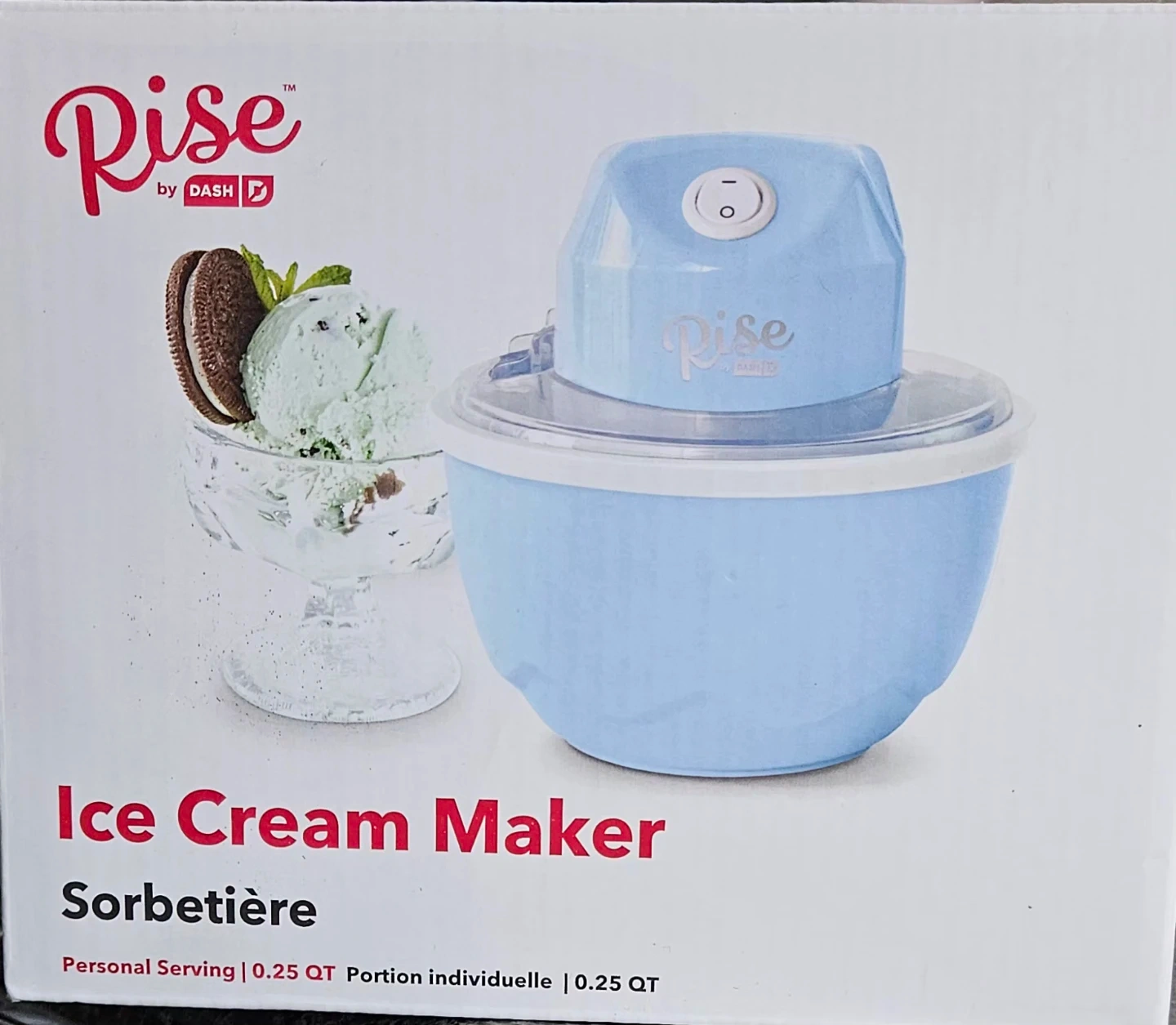 This Rise by Dash ice cream maker is perfect for making personal servings of frozen treats. It's great for ice cream, frozen yogurt, or sherbet. It has one-touch power for easy operation!