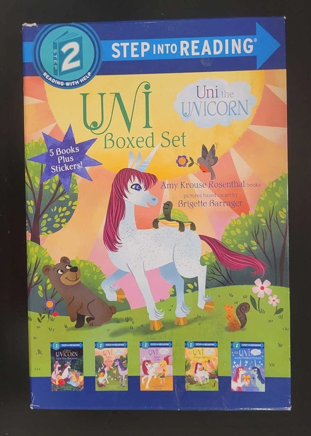 Set of 5 "UNI the Unicorn" books, Scholastic "Step into Reading" STEP 2. Good used condition, read only once. $10 for the set. Books can also be sold separately for $3 each. Pick up in Georgetown or meet up along the Hwy 401 corridor in Mississauga or Toronto.