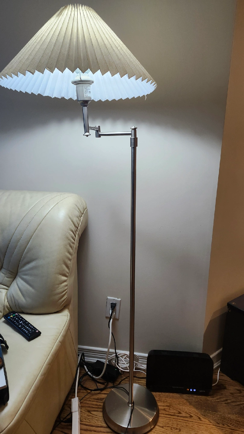 Selling a stylish adjustable floor lamp! It has a sleek design and provides great lighting for any room. Perfect for reading or adding ambiance to your space