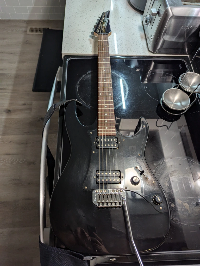 Selling a used Ibanez electric guitar. It's black and in good condition. Great for someone looking to start playing or needs a reliable practice guitar.