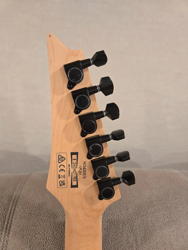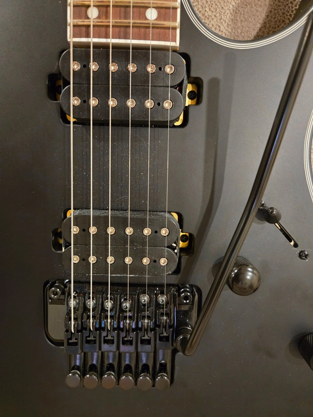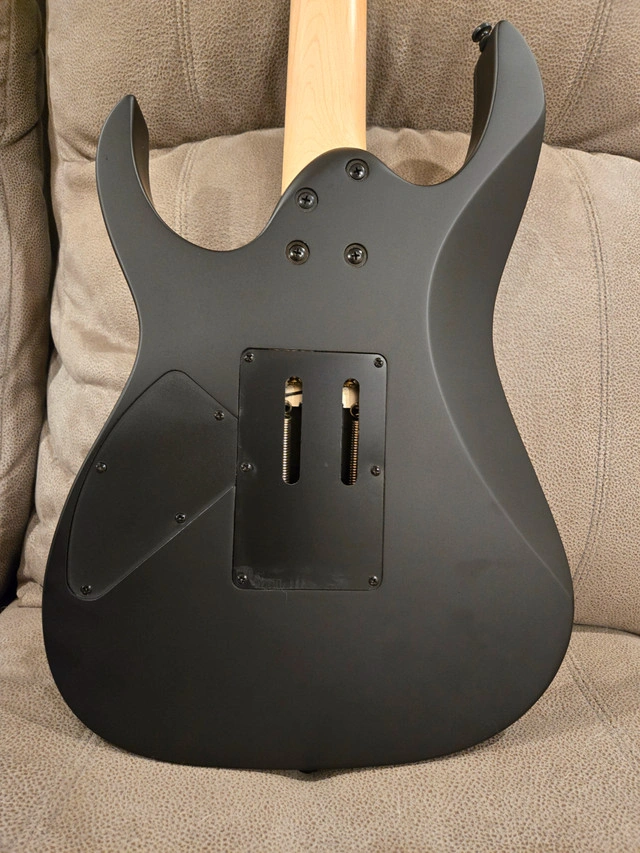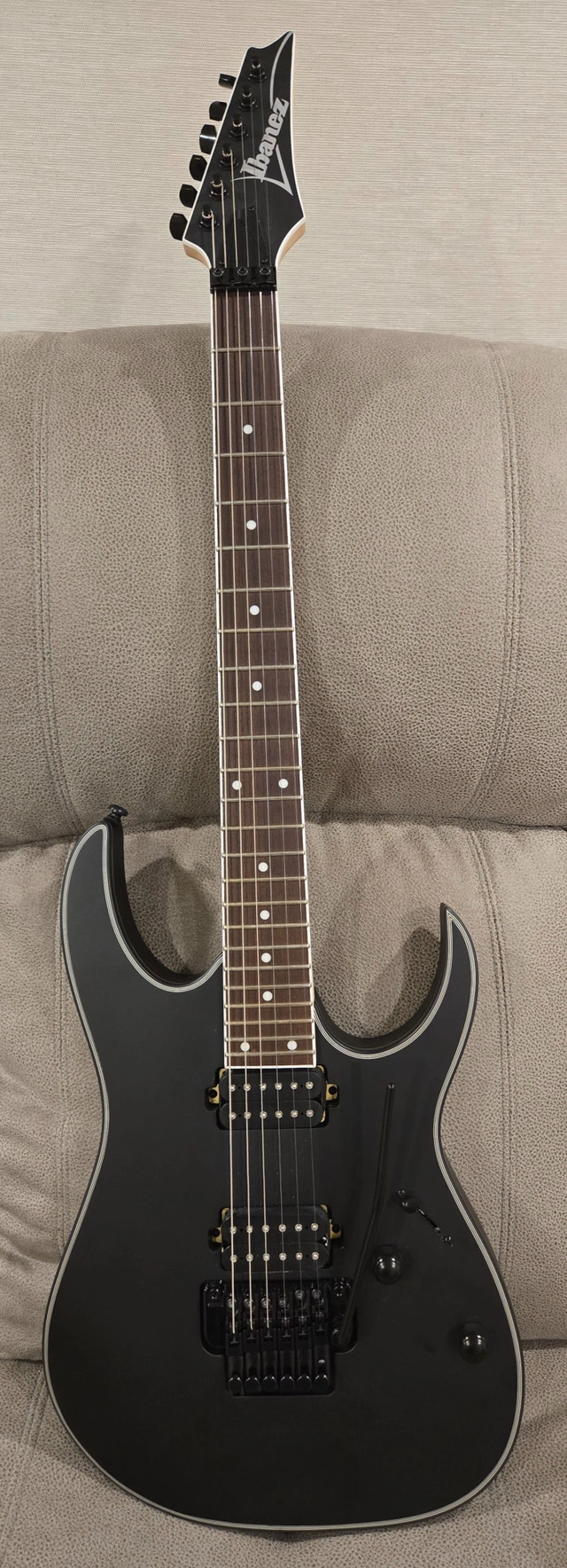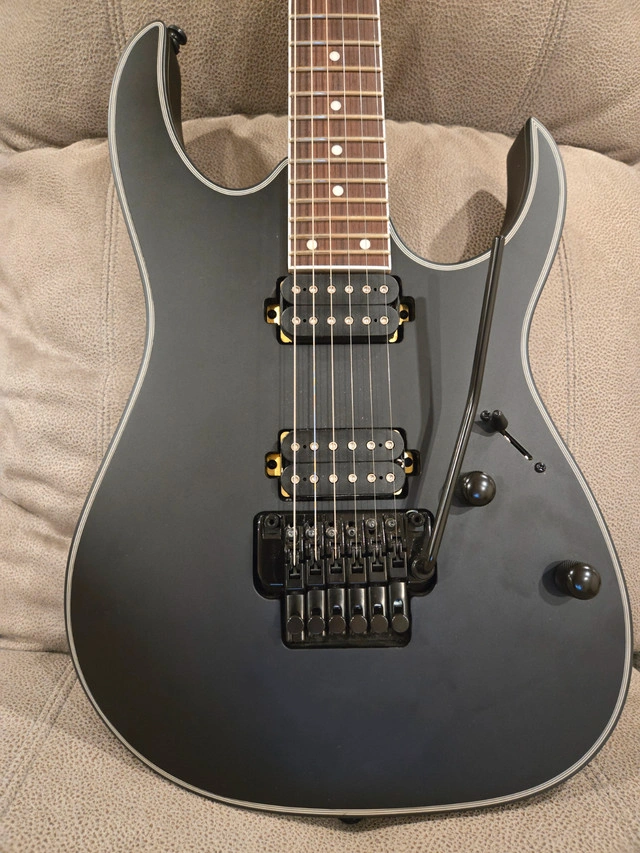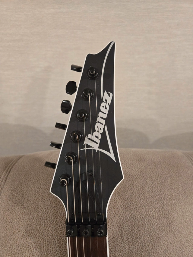 Near mint flat black Ibanez was purchased new in December 2024. Specifications: Color Name: Black Flat Country of Origin: Indonesia Number of Strings: 6 Neck Type: Wizard III Neck Joint: Bolt-on Neck Material: Maple Neck Finish: Satin Polyurethane Neck Thickness (1st fret, mm): 19 Neck Thickness (12th fret, mm): 21 Scale (inch): 25.5" Nut Width (mm): 43 Number of Frets: 24 Fretboard: Jatoba Fretboard Radius (mm): 400 Fret Type: Jumbo Inlay: White dot Body Material: Meranti Body Finish: Satin Polyurethane Bridge: Edge-Zero II String Spacing (mm): 10.8 Nut: Locking Machine Head: Ibanez machine heads Hardware Color: Black Neck Pickup: Quantum (H) Bridge Pickup: Quantum (H) Controls, Pickup Selector: 1 Volume, 1 Tone, 5-way lever switch String Gauges: .009/.011/.016/.024/.032/.042 Tuning: 1E,2B,3G,4D,5A,6E