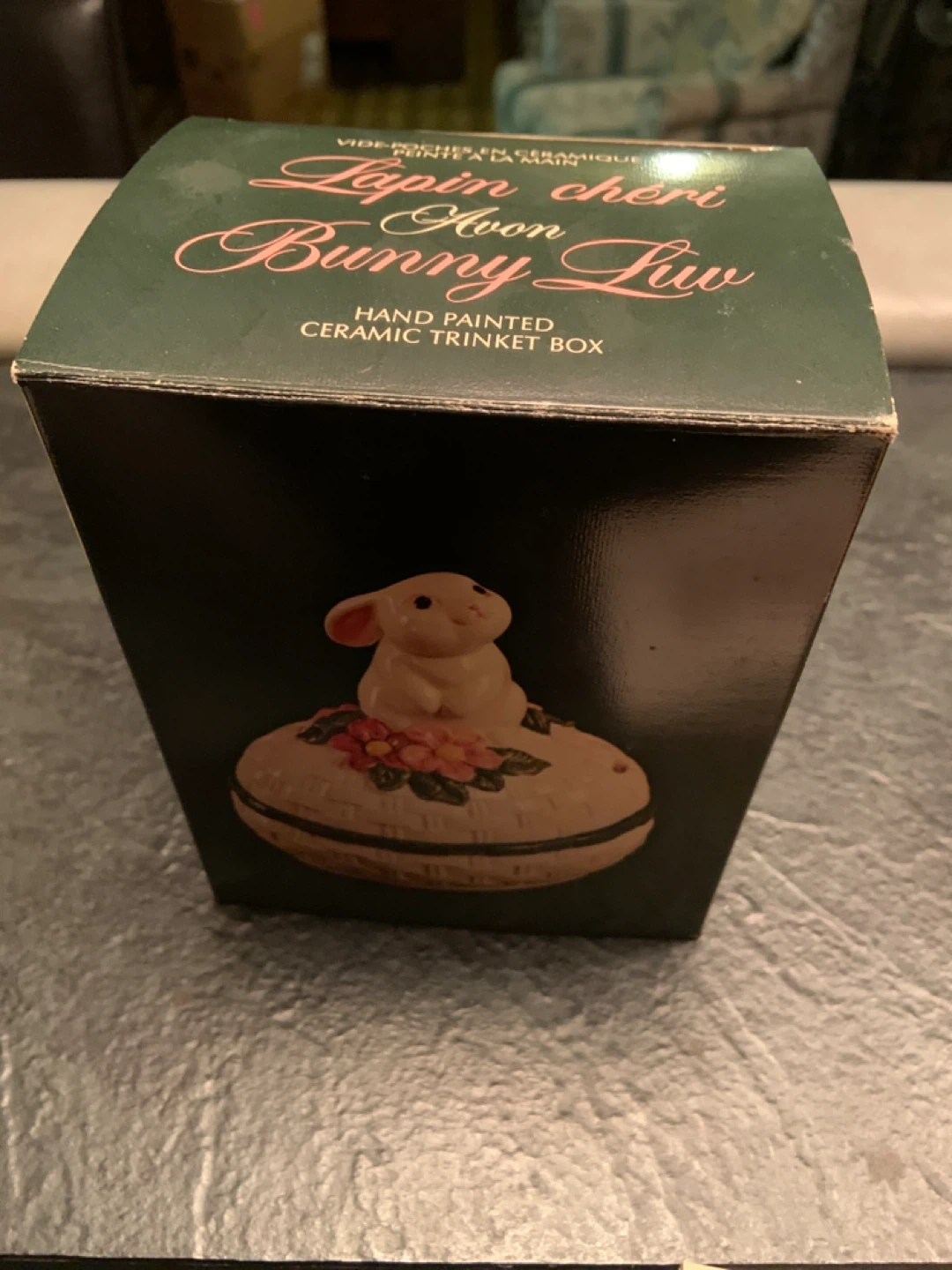 Avon Lapin cheri Bunny Luv Hand Painted Ceramic Trinket Box