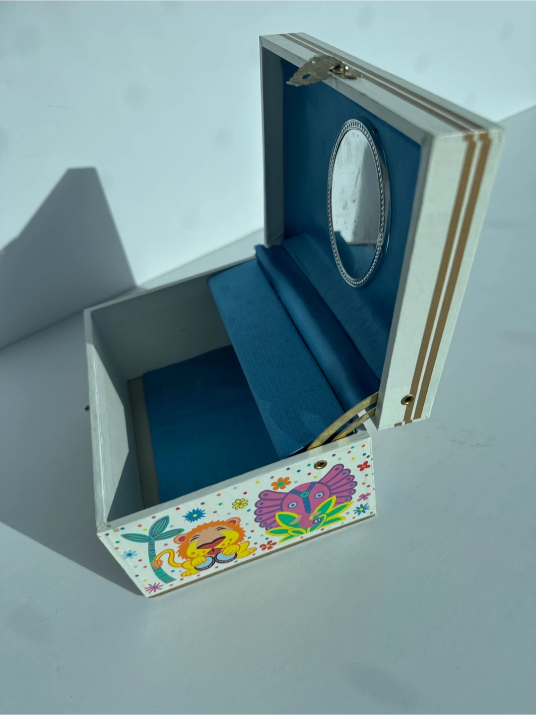 This is an adorable vintage Disney music box featuring the "It's a Small World" theme from Walt Disney World. It includes a small mirror inside and a winding key on the side. The interior is lined with blue satin. ⭐️nearest major intersection Eglinton & Bayview for easy pick-up⭐️