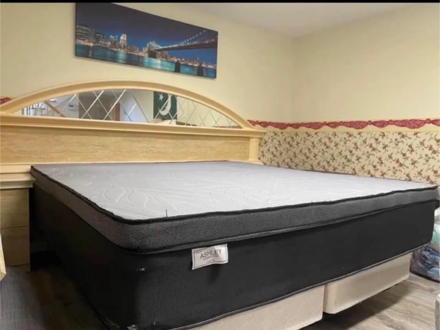 King size bed with Ashley Furniture Queen Mattress