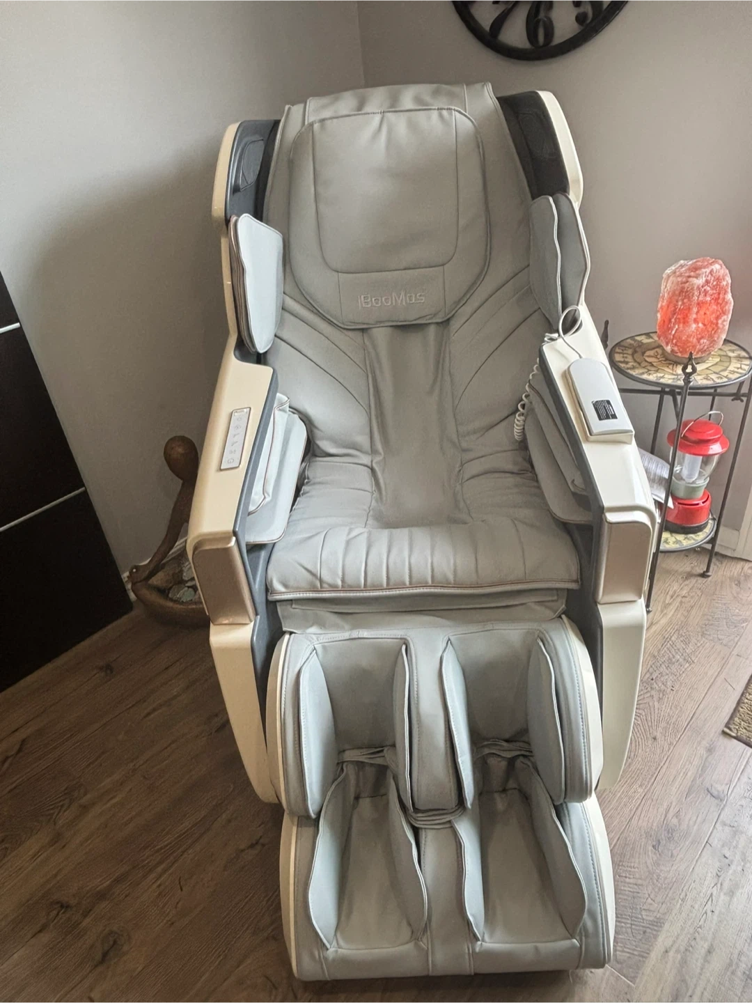 Selling an iBooMAs massage chair that's in excellent condition! It's super comfy and has a bunch of different massage settings to help you relax after a long day. The chair is a light grey colour and would fit nicely into any living space. Treat yourself to some at-home spa days!