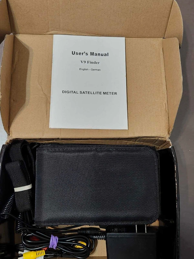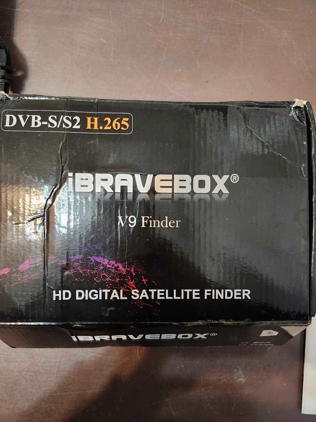 Selling an iBravebox V9 Finder in good working condition. It's a HD digital satellite finder, perfect for aligning satellite dishes. Comes with the original box, protective carrying case, power adapter, car adapter, AV cables, and user manual. Features DVB-S/S2 H.265 Support, HD Digital Display, and Software Upgrade via USB. Asking $110.