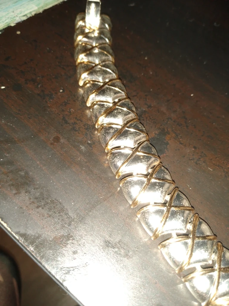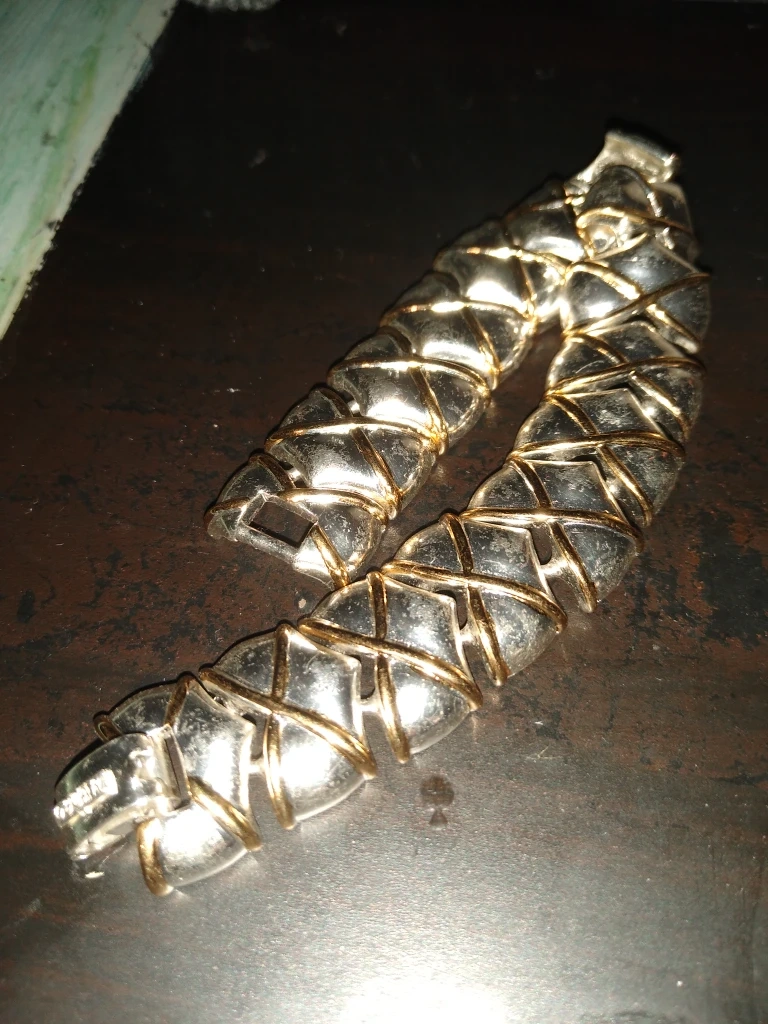 This is a super stylish and classy looking silver and gold tone bracelet by Oscar de la Renta anybody would feel very special to receive this as a Christmas gift it's just lovely.