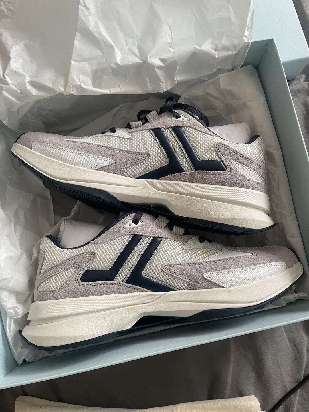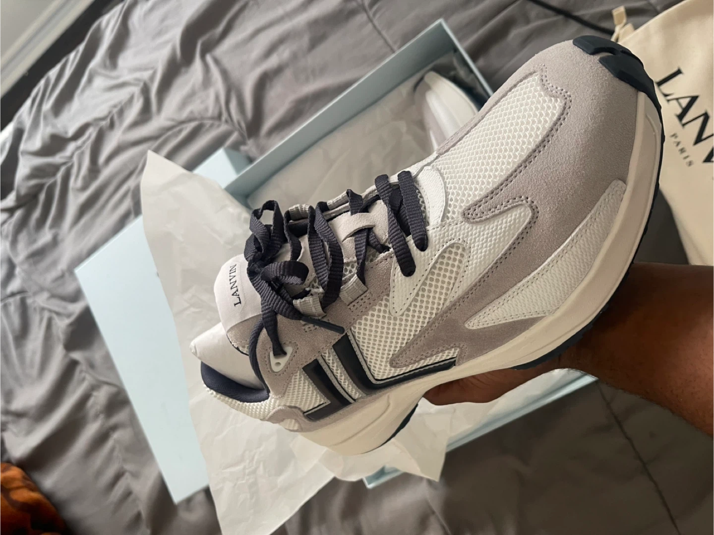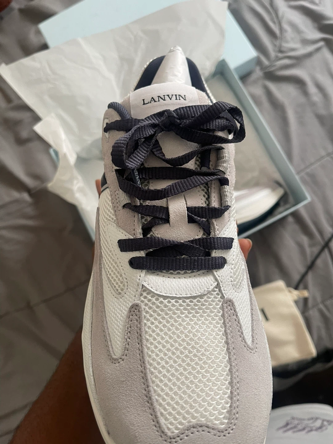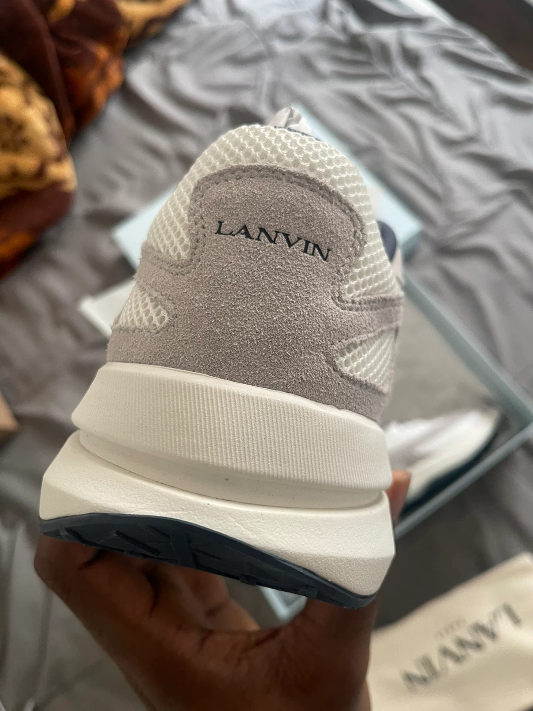 Lanvin Jla sneakers in white and navy. Comes with original box and dust bags. These low-top sneakers are a stylish addition to any wardrobe!